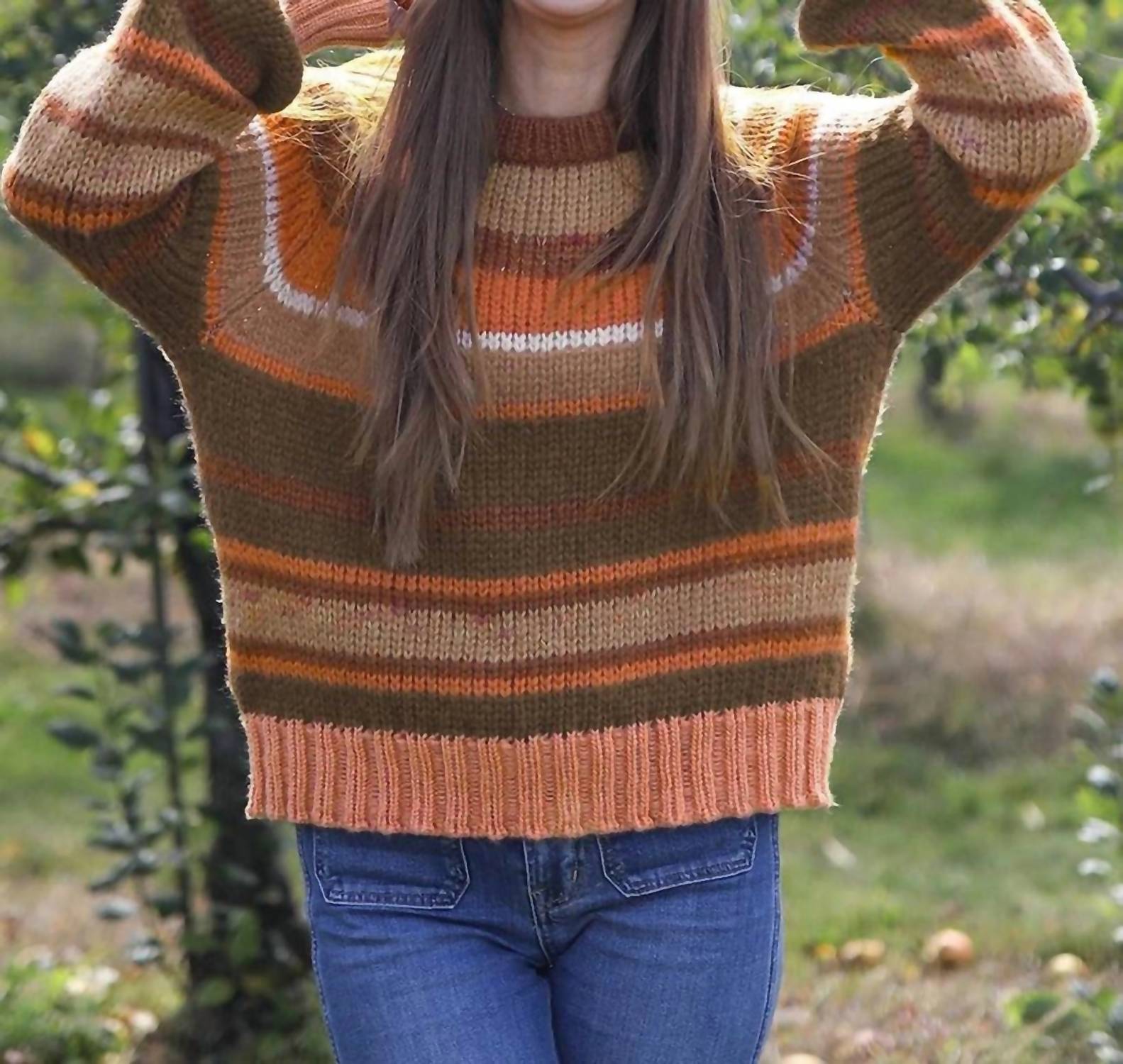 Introducing the Women's Inez Striped Crew Cardigan by Wooden Ships, a cozy addition to your fall wardrobe. This long sleeve cardigan features bold textured stripes in warm autumn shades, crafted from a luxurious blend of 76% acrylic, 12% mohair, and 12% wool. Designed with a crewneck and a relaxed boyfriend fit, it offers easy movement with its raglan sleeves and includes ribbed detailing for a polished finish. Care: Machine wash delicate. Closure: Pull on. Imported.