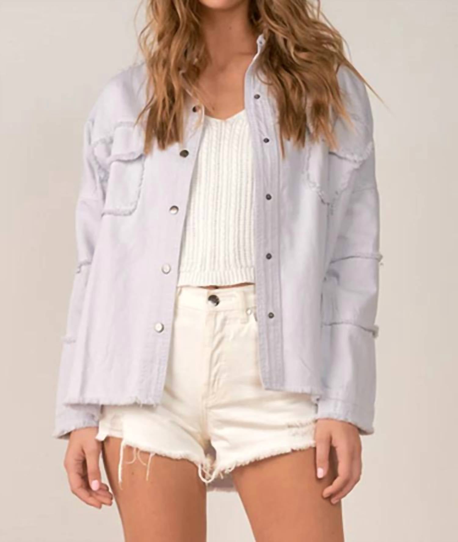 Jaqueta estilo militar com botões, bordas e bainha sem acabamento, fecho de botão de pressão e costura caída nos ombros. Caimento relaxado. Modelagem ampla. Lavagem à mão. 100% algodão.