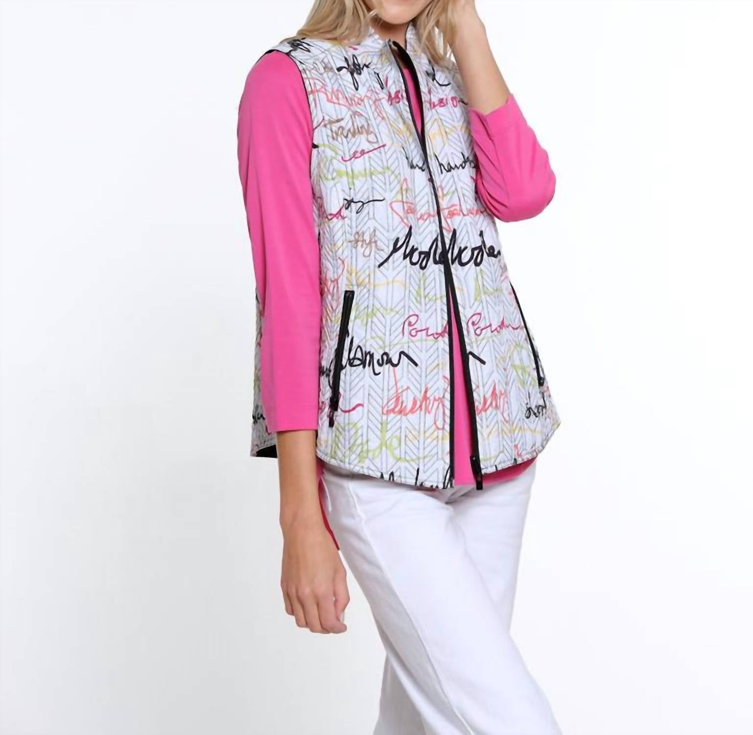 Eleve seu guarda-roupa com o colete Just Say It da Multiples, uma peça chique e funcional para qualquer ocasião. Este colete reversível, sem mangas, possui fecho de zíper e gola com zíper, oferecendo uma combinação perfeita de estilo e praticidade. Confeccionado em poliéster multiestampado, inclui um prático bolso com zíper para maior praticidade. Cuidados: Lavar à máquina.