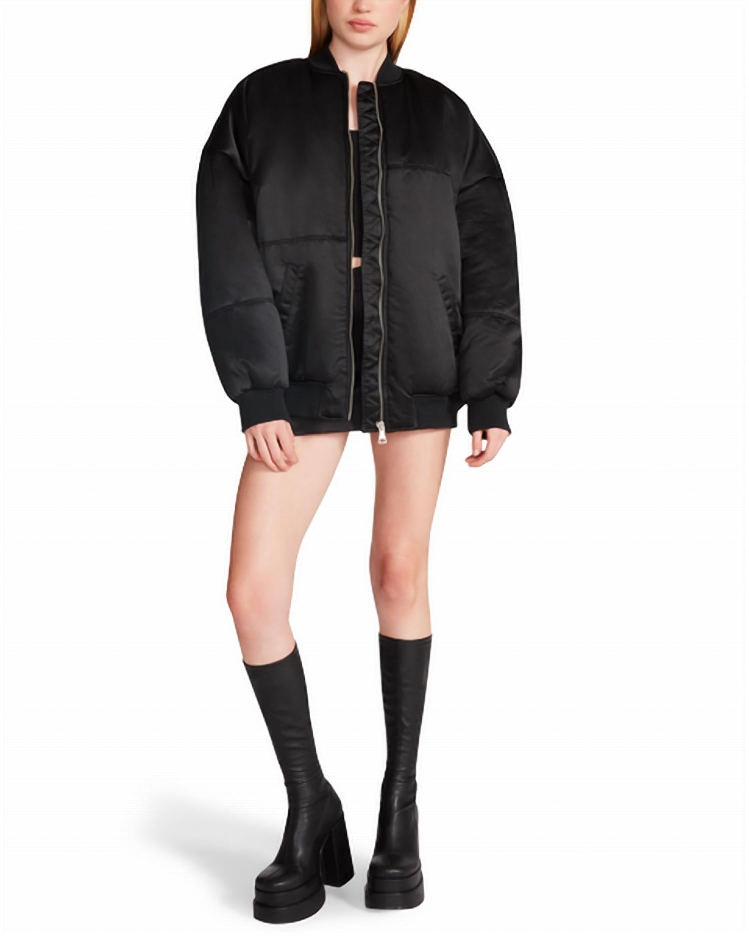 Uma versão da sua jaqueta bomber clássica favorita. UMA JAQUETA BOMBER OVERSIZED. 100% poliéster. Instruções de cuidado: Lavar somente à mão. Origem: Importado. País de origem: China. Sobre este item: 125 cm