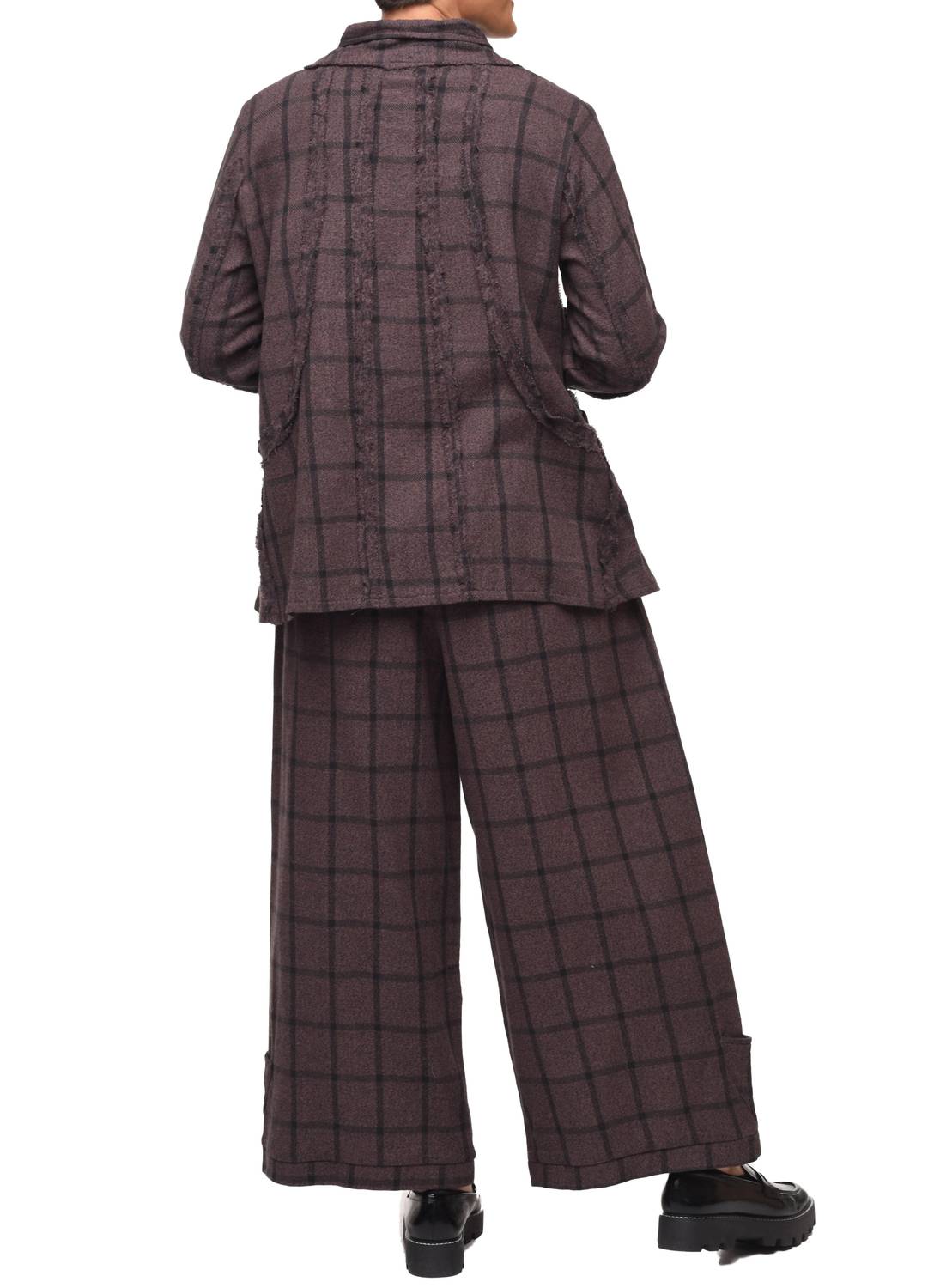 Jaqueta marrom e preta, na altura do quadril, em bouclé, com costuras expostas, bordas cruas e bolsos frontais. Comprimento do corpo: 68 cm a 74 cm. Peito: 104 cm a 138 cm. Comprimento da manga: 58 cm a 61 cm. 100% algodão. Lavagem à máquina. Pendurar para secar. A modelo veste tamanho pequeno.