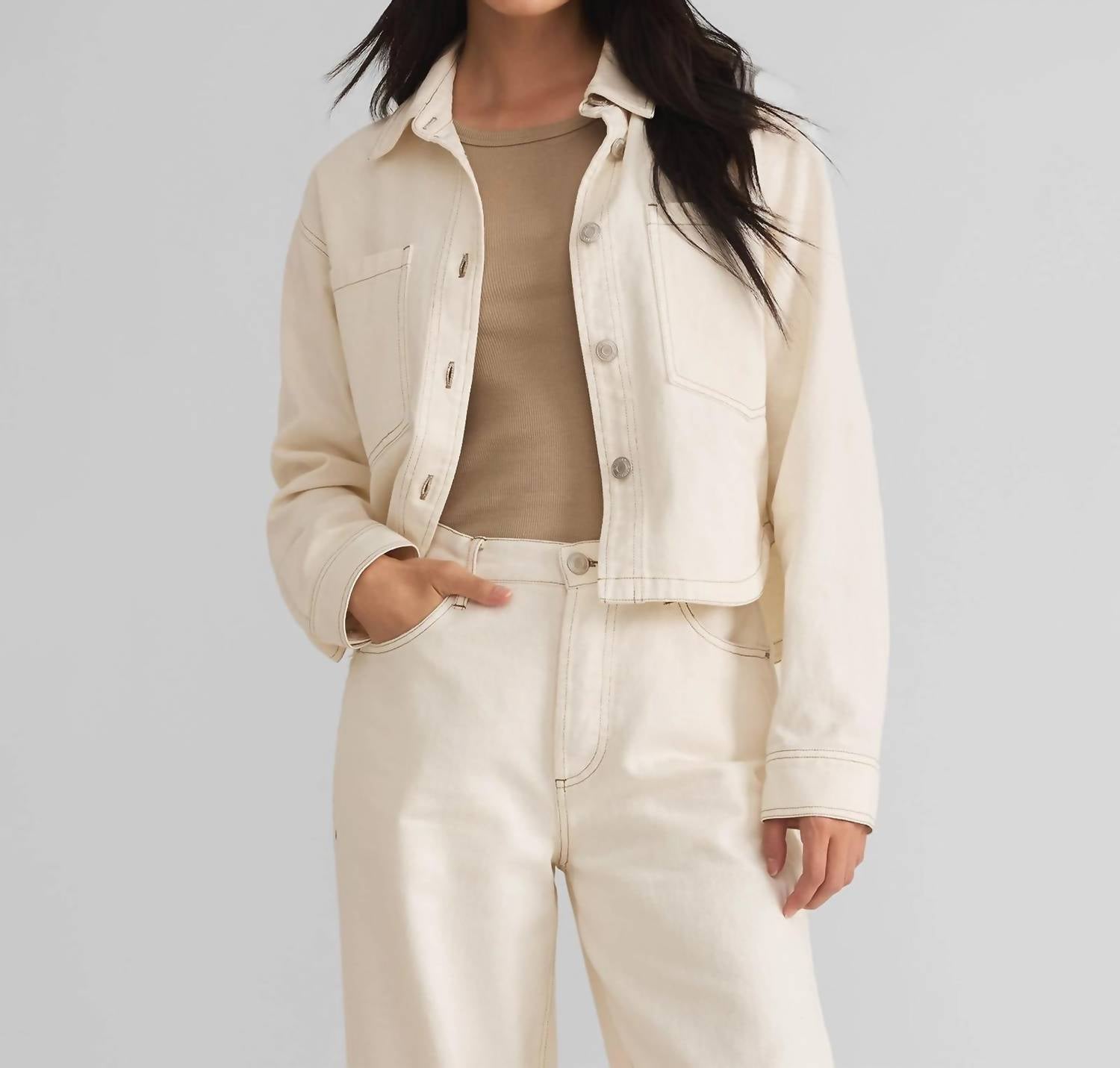 Clássico, descolado e combina com quase qualquer estilo de roupa. Adote um estilo despojado com a Jaqueta Jeans Cropped All Day da Z Supply na cor off-white, perfeita para o seu look streetwear de primavera. Esta jaqueta feminina apresenta um corte relaxado com mangas compridas e comprimento cropped para um toque moderno. Confeccionada em 100% algodão, possui gola clássica, fecho frontal por botões e um prático bolso aplicado. Para facilitar os cuidados, basta lavar na máquina com água fria.