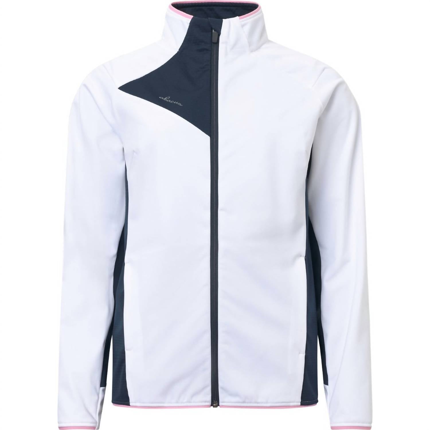 This utility jacket is the perfect combination of cool and feminine. Discover the Ardfin Softshell Mock Neck Jacket by Abacus Sportswear US, a stylish and functional piece for women in White Navy. Crafted from stretchable nylon in a soft and breathable 3-layer softshell material, this jacket features a long sleeve design with a mock neck for added coverage. It includes a full zip closure and two zipped front pockets for secure storage. Care is simple with machine wash and tumble dry instructions. Perfect for game days, this jacket offers athleisure trends suited for spring activities.