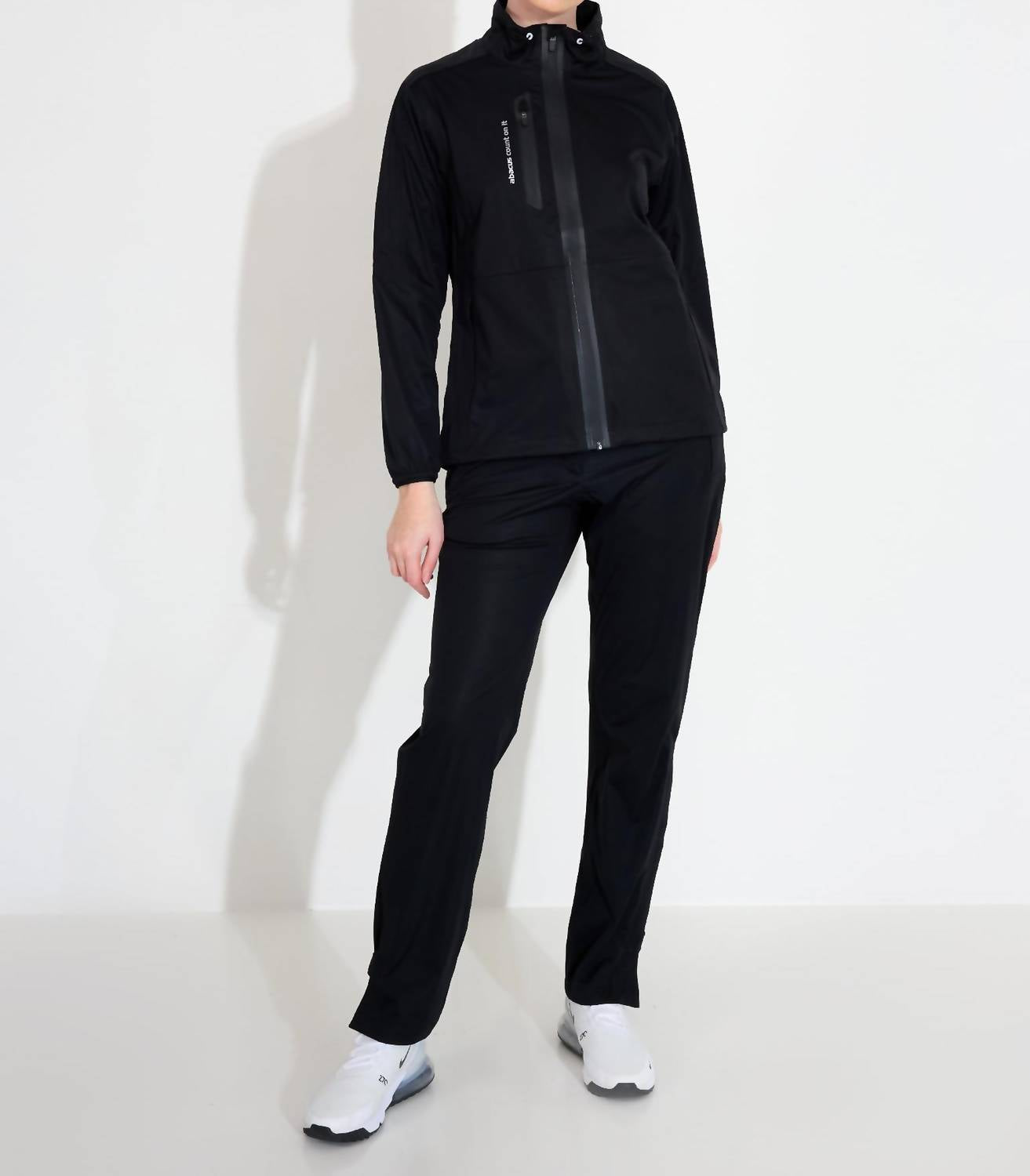 The coolest, most versatile utility jacket. Match it with your favorite pair of denim or throw it over any day dress. The Bounce Rain Jacket by Abacus Sportswear US is designed for optimal performance with its long sleeves and three-layer polyester construction. This utility jacket showcases a solid black color, featuring a waterproof zip closure and multiple pockets for practical storage. Originating from a brand known for quality, the jacket incorporates advanced breathability with seam-sealed, PFC-free materials, ensuring you stay dry and comfortable during spring's unpredictable game days. It's best maintained with machine washing and line drying, making it both functional and easy to care for.