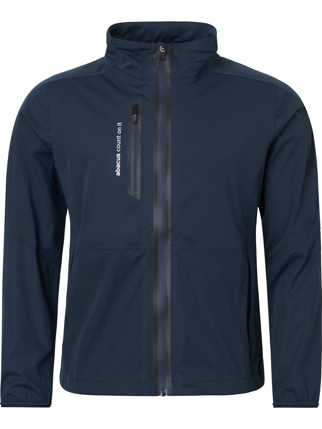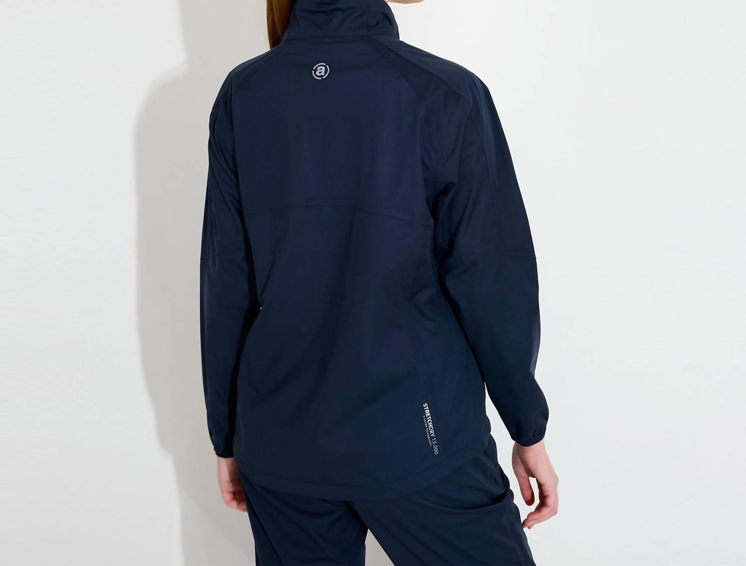 The coolest, most versatile utility jacket. Match it with your favorite pair of denim or throw it over any day dress. Stay dry and stylish with the Women Bounce Rain Jacket by Abacus Sportswear US, perfect for game day or your athleisure wardrobe. This utility jacket features long sleeves and is crafted from 3-layer polyester with a solid navy color and details in black. It boasts a zip closure, mockneck, waterproof seams, and multiple pockets, providing both functionality and comfort without lining. Care for this breathable, PFC-free jacket by machine washing and line drying.