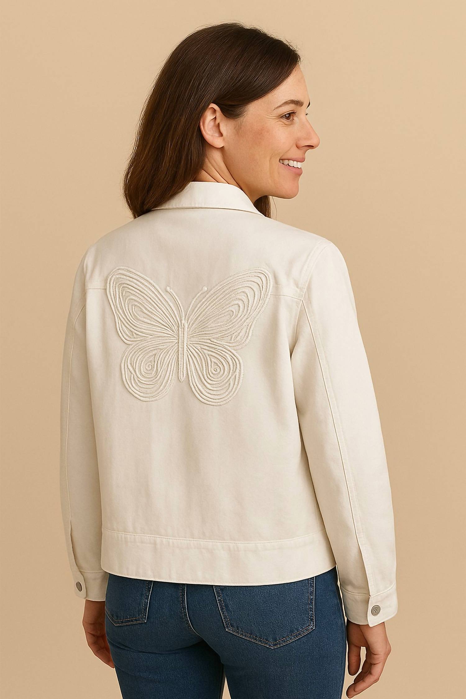 A jacket so versatile you can literally wear it with anything. Elevate your travel wardrobe with the Adore Butterfly Button Down Jacket in chic white, perfect for the minimalist fashion enthusiast. This women's casual jacket features a solid pattern with practical pockets and a classic collar for a timeless look. It boasts long sleeves and a convenient button closure, ideal for layering in the fall season.
