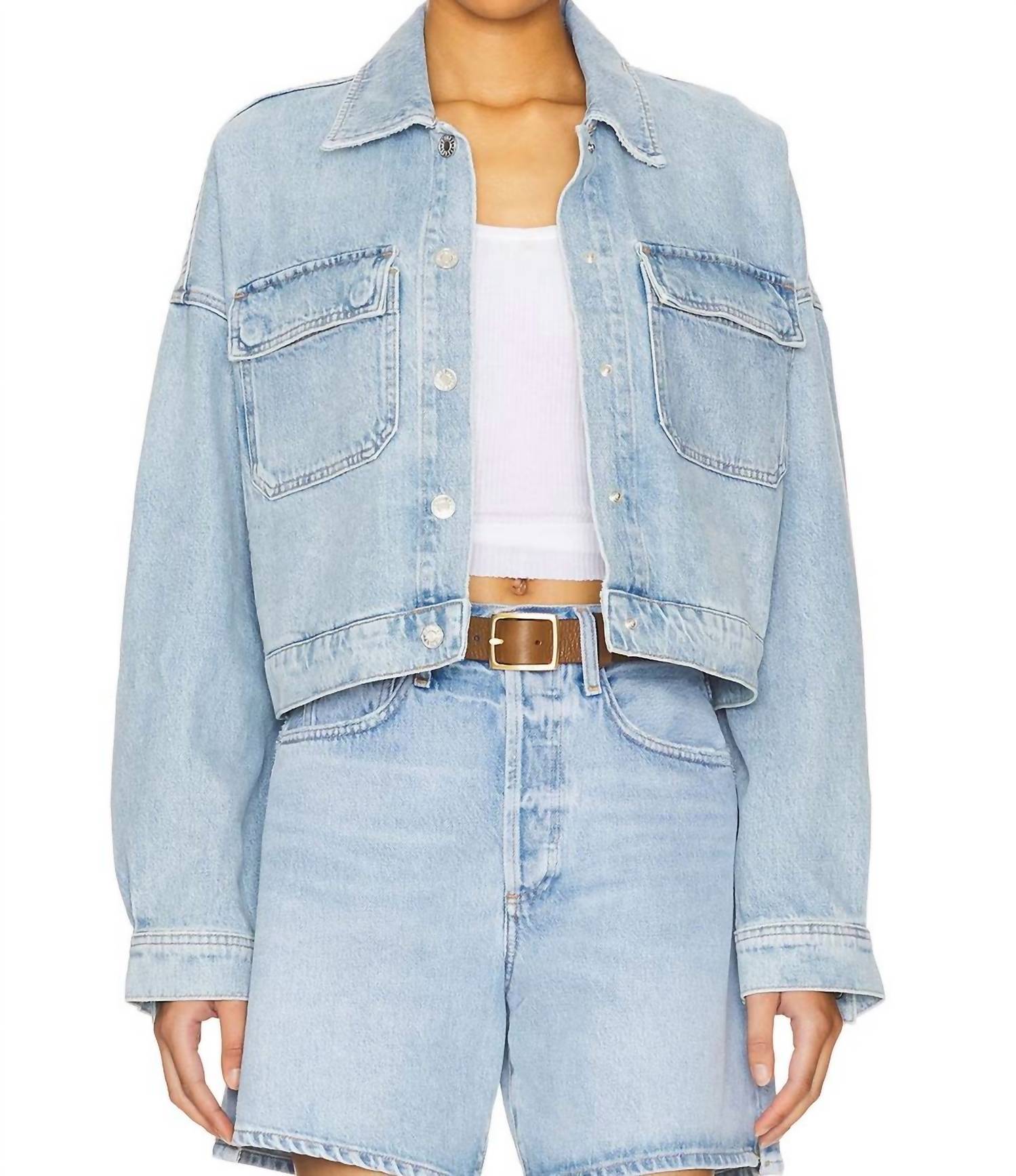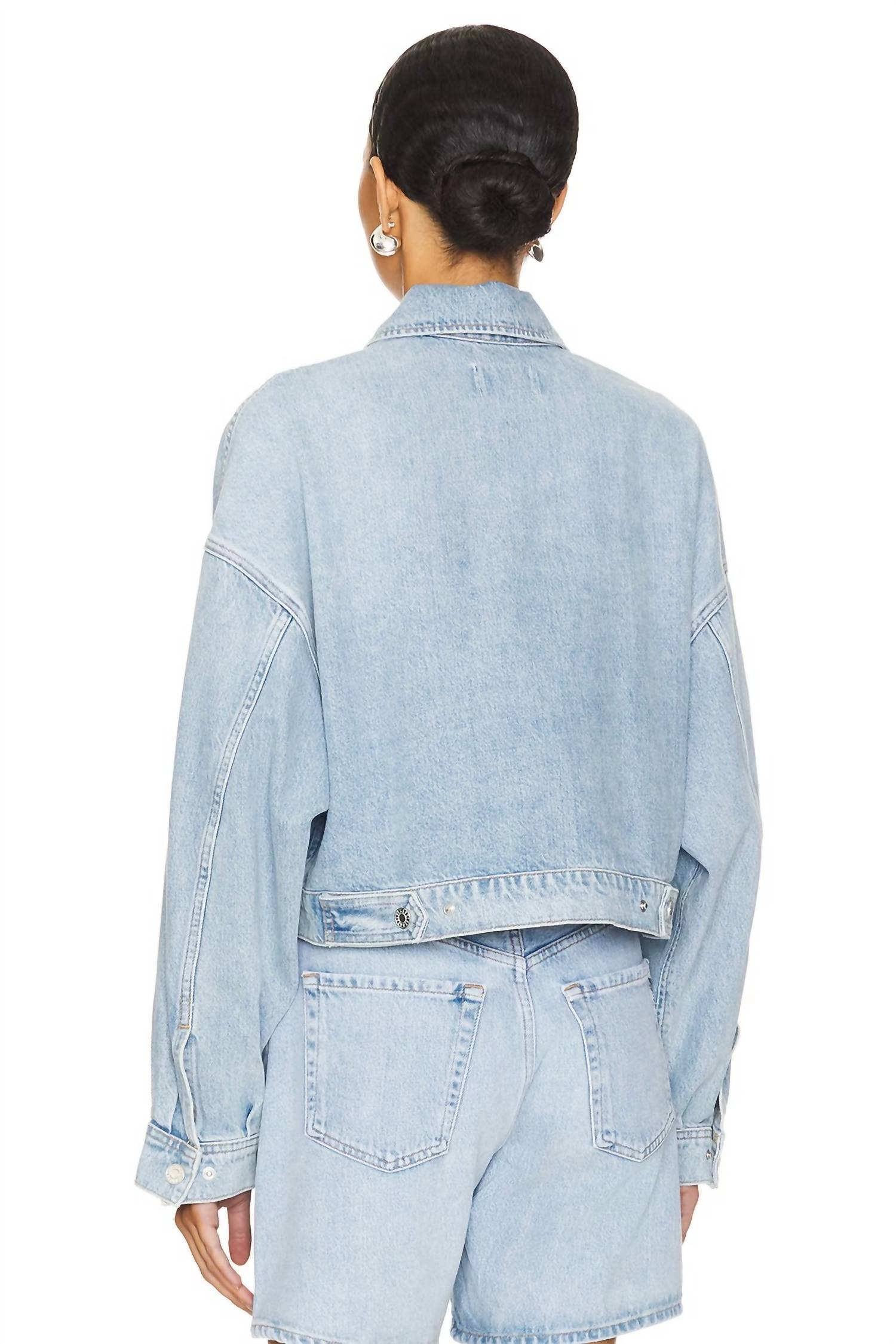 Discover timeless style with the Luka Denim Jacket by AGOLDE in a stunning Swivel hue—your go-to piece for an effortlessly chic dinner party look. This vintage-inspired jacket comes with long sleeves and is crafted from 100% cotton for a comfortable, oversized fit. Made in Turkey, it features a practical snap closure and handy pockets for added convenience. Easy care instructions include machine wash and tumble dry.