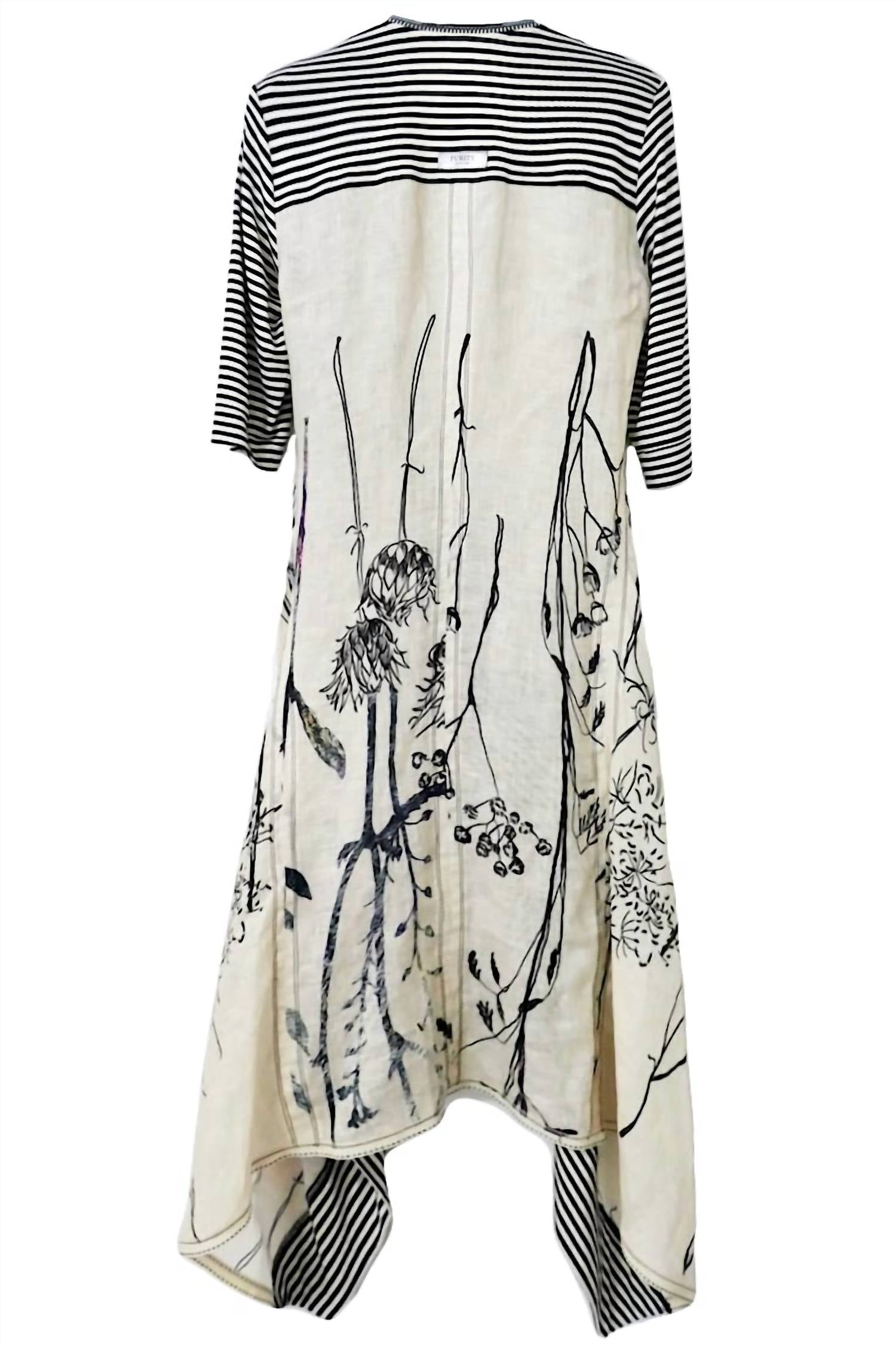 Uma jaqueta tão versátil que você pode usá-la com qualquer coisa. Blusa longa de linho Duster com estampa Beate Heymann personalizada. Mangas e detalhes em malha listrada contrastante.
