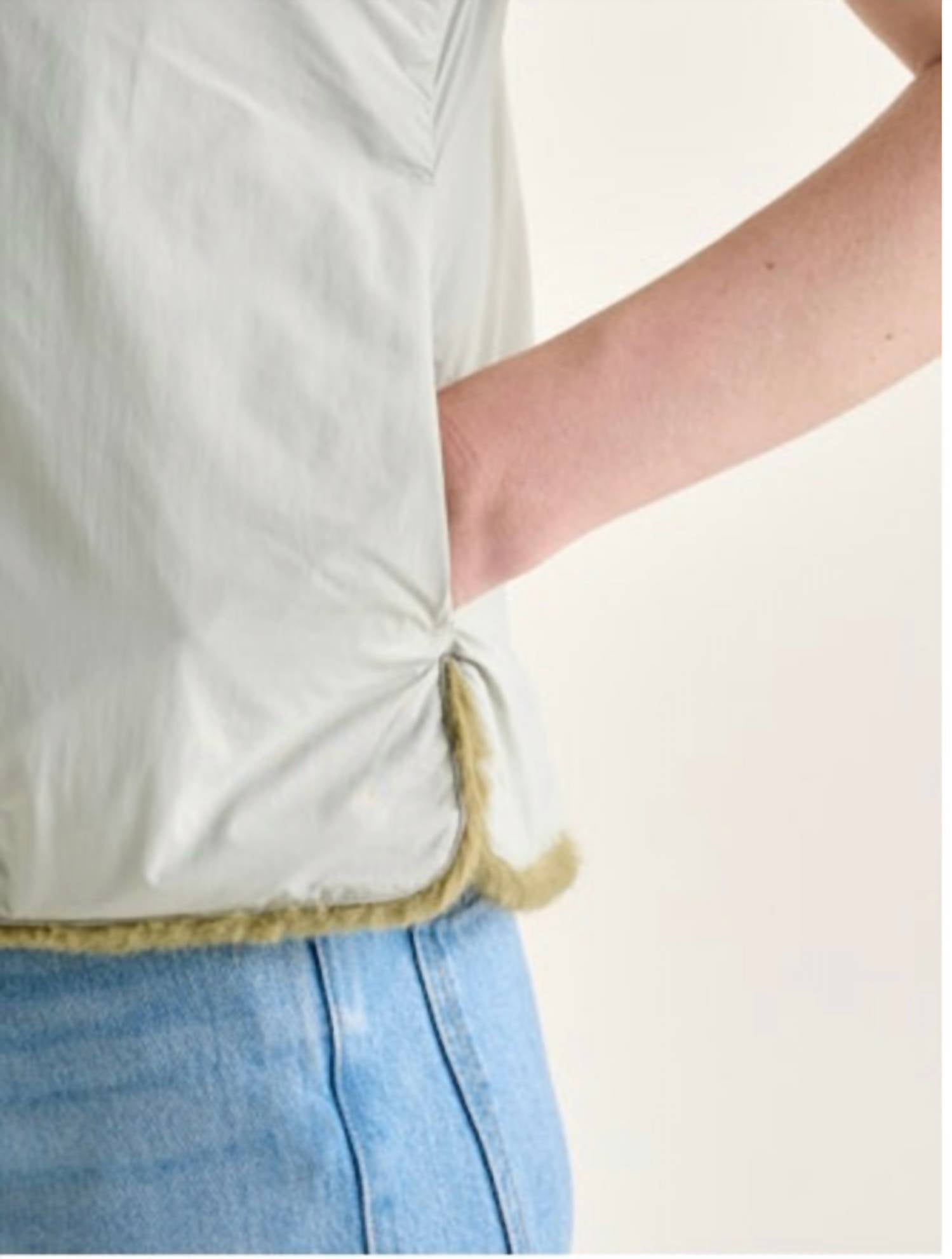 Essential piece for your winter wardrobe with its minimalist trend and functionality. Sleeveless vest showcases waterproof nylon on one side and luxurious deep green faux fur on the other, all tied together with a practical zip closure. Designed for women who love travel and adventure, features convenient pockets for added storage. Perfect for the season, the versatile vest in Desert Sage is sure to keep you warm and stylish.