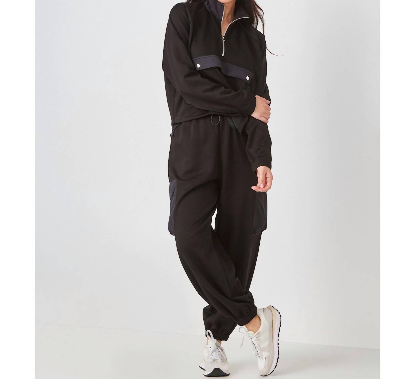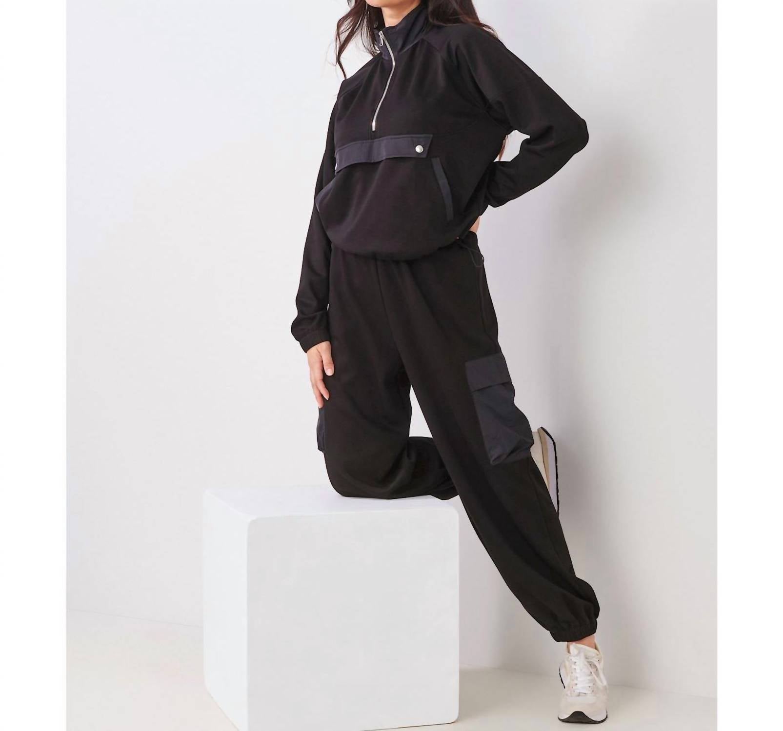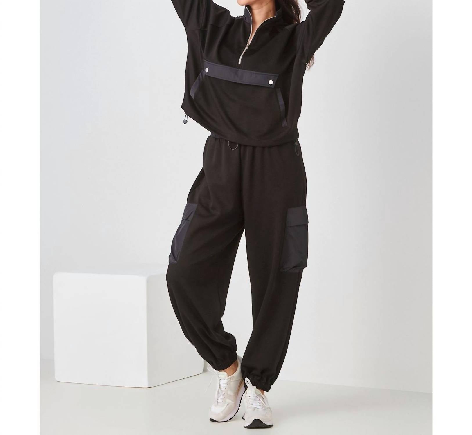 Com um toque vintage, combine esta jaqueta incrível com seu jeans favorito para um visual descolado e descontraído. Apresentamos o Conjunto Relaxed Active Charlie Paige na versátil cor preta, projetado para a mulher dinâmica. Esta jaqueta de manga comprida com gola alta oferece um fecho de zíper confortável e é confeccionada em uma mistura de rayon macio e respirável com 63% rayon, 30% poliéster e 7% elastano. Seu caimento relaxado apresenta cós confortável, um grande bolso frontal tipo canguru e detalhes em tecido plano. Instruções de cuidado: Lavar à máquina e secar na secadora para sua conveniência.