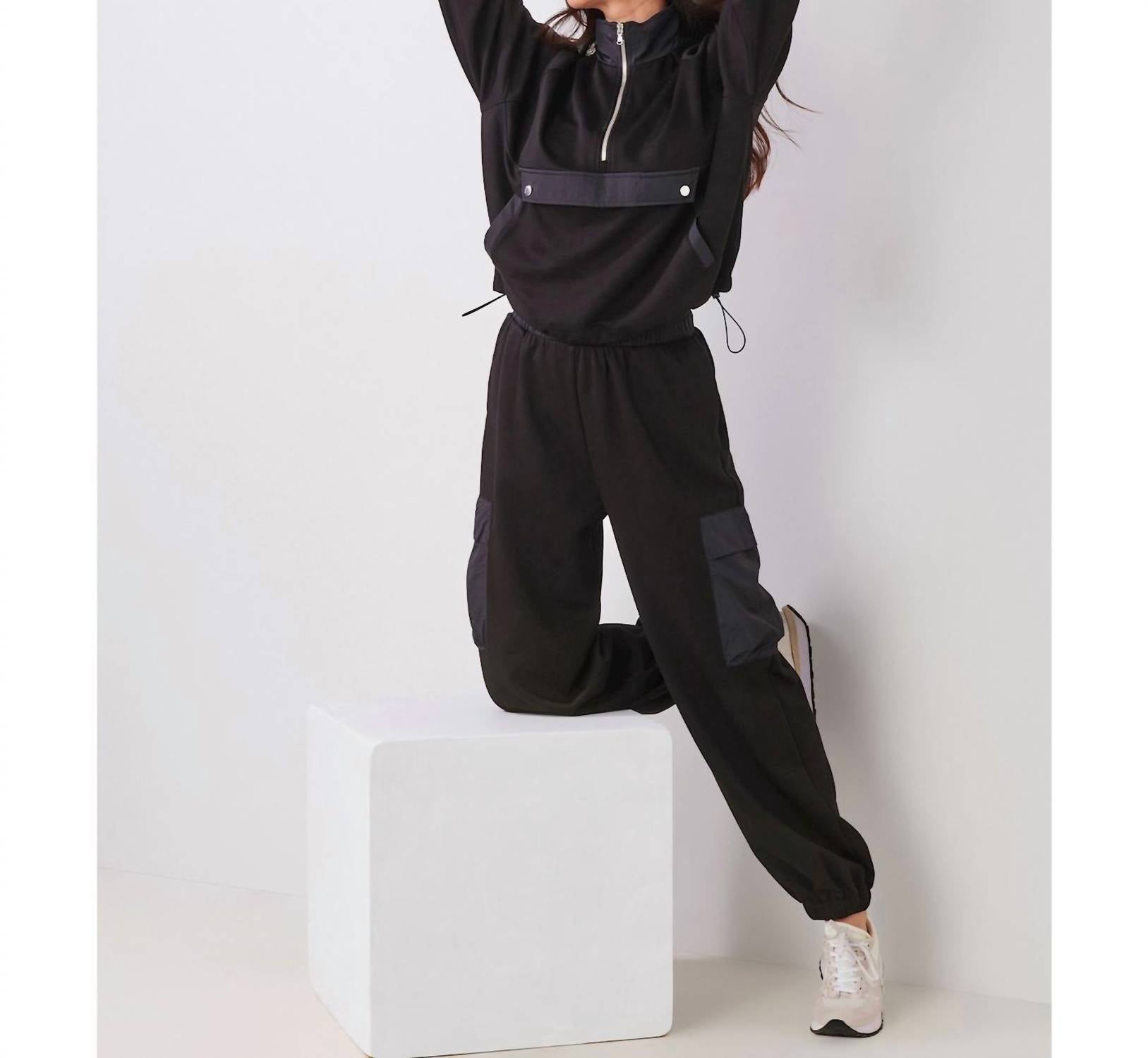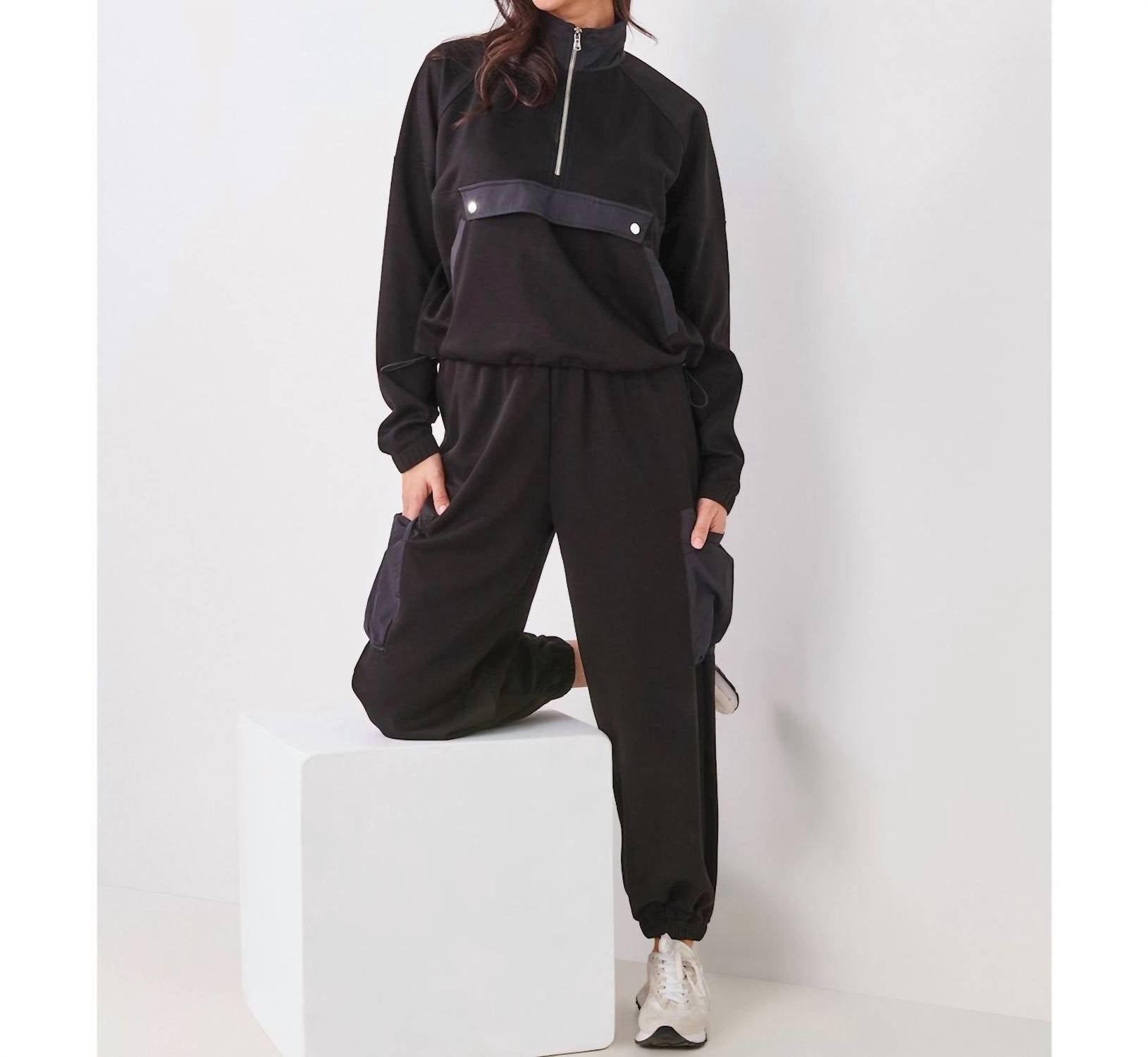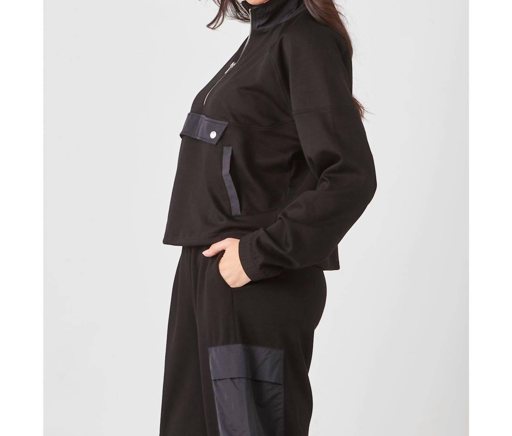 Com um toque vintage, combine esta jaqueta incrível com seu jeans favorito para um visual descolado e descontraído. Apresentamos o Conjunto Relaxed Active Charlie Paige na versátil cor preta, projetado para a mulher dinâmica. Esta jaqueta de manga comprida com gola alta oferece um fecho de zíper confortável e é confeccionada em uma mistura de rayon macio e respirável com 63% rayon, 30% poliéster e 7% elastano. Seu caimento relaxado apresenta cós confortável, um grande bolso frontal tipo canguru e detalhes em tecido plano. Instruções de cuidado: Lavar à máquina e secar na secadora para sua conveniência.