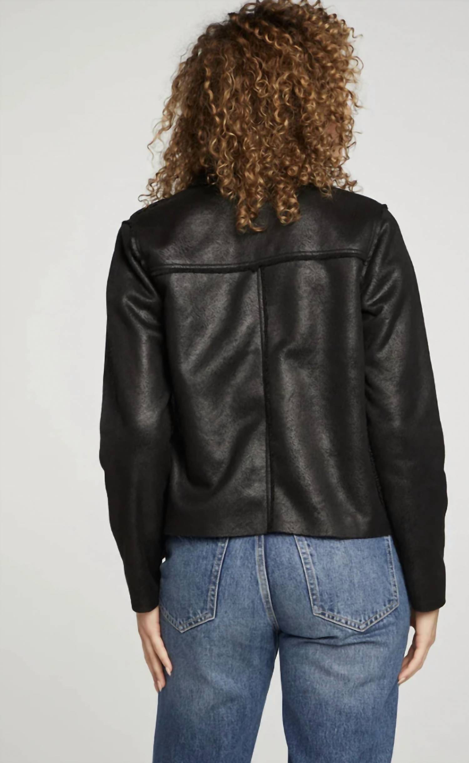 A leather jacket so good, it works with just about any outfit. You'll never own too many black jackets! Our Faux Suede Reversible Waterfall Jacket features imported fabric. Pair with jeans and a white Tee for an Easy, on-the-go aesthetic! 100% Polyester