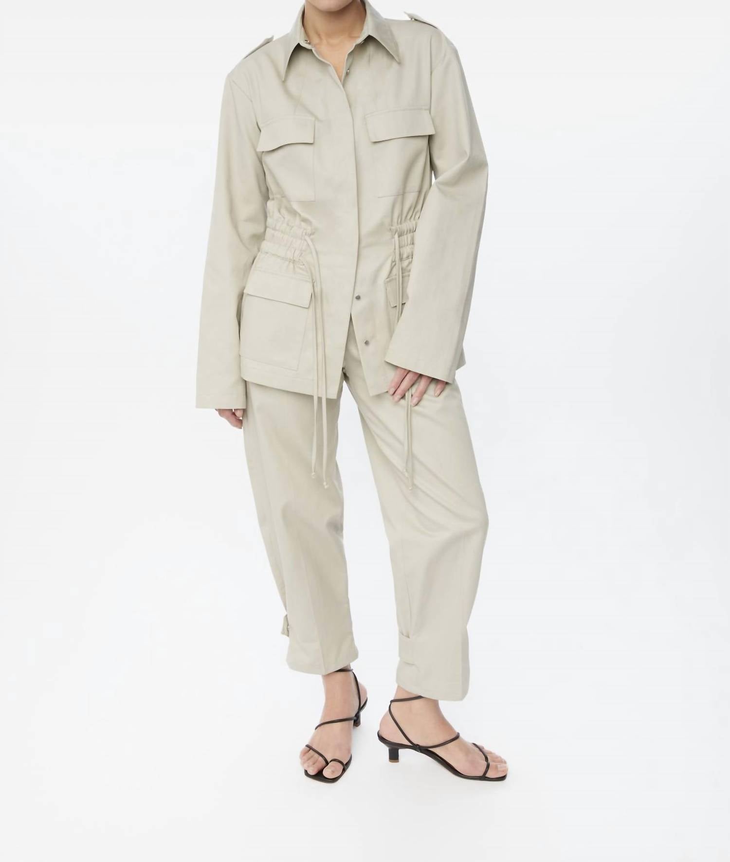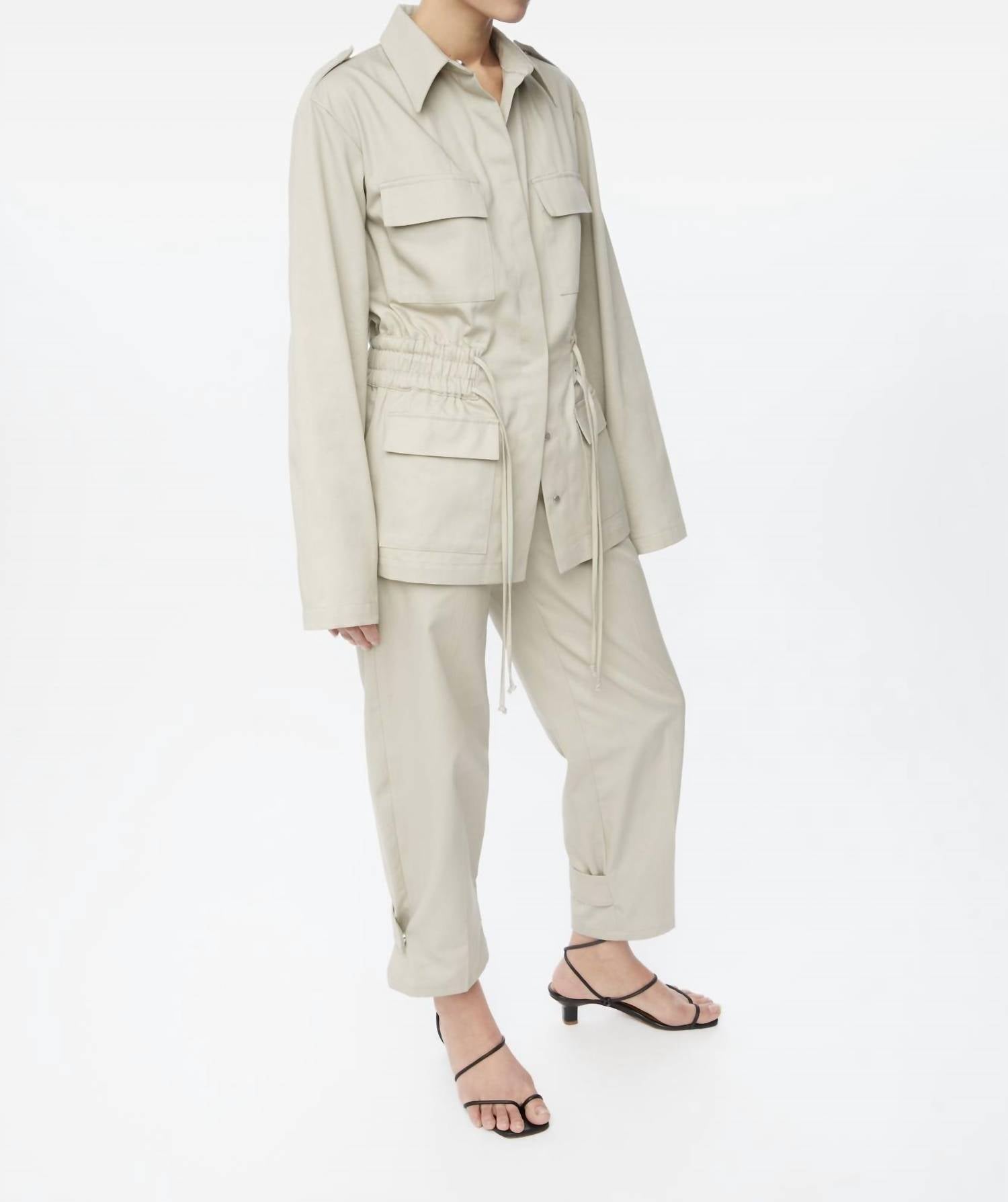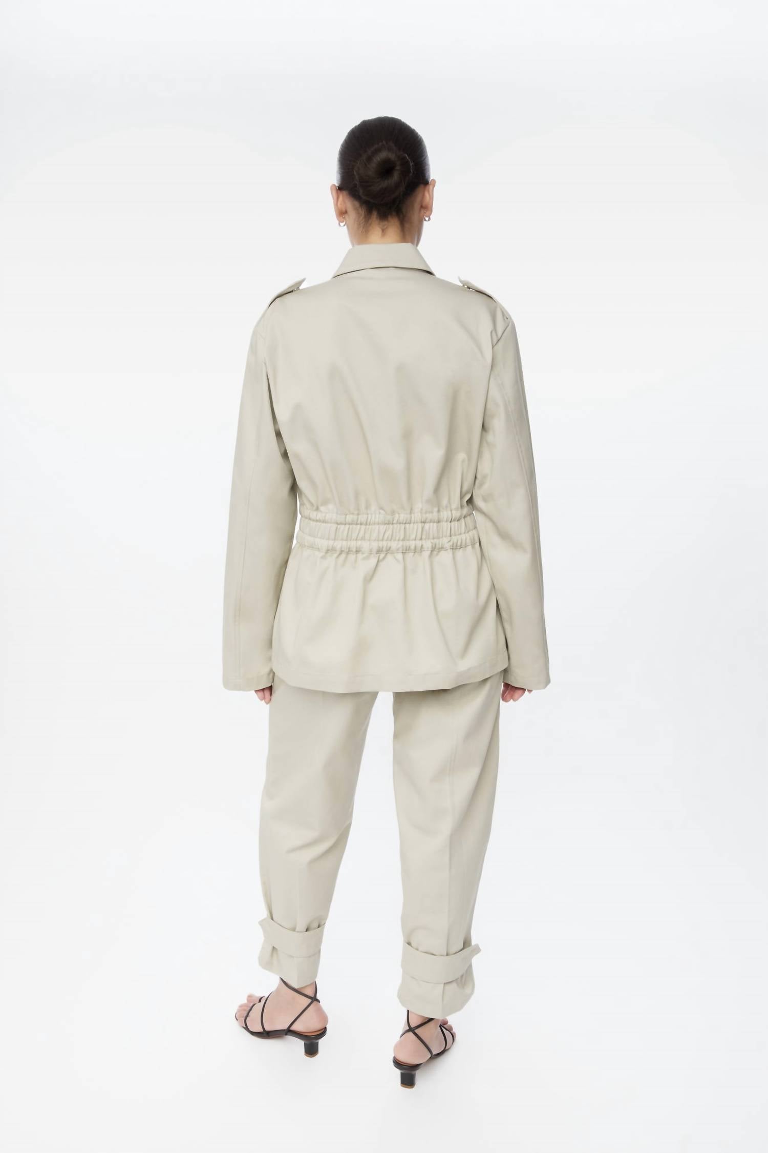 A jaqueta utilitária definitiva para garotas descoladas. Apresentamos a Jaqueta Utilitária Canvas Cotton da Dāl the Label, uma peça estilosa na cor pedra, perfeita para qualquer ocasião. Confeccionada em algodão puro com mangas longas estilo sino, esta jaqueta oferece estilo e funcionalidade com sua estrutura de suporte e fecho de pressão oculto. A jaqueta utilitária possui bolsos frontais com aba e um cordão ajustável na cintura para um ajuste personalizado. As instruções de cuidado incluem secagem em máquina para manter a peça impecável.