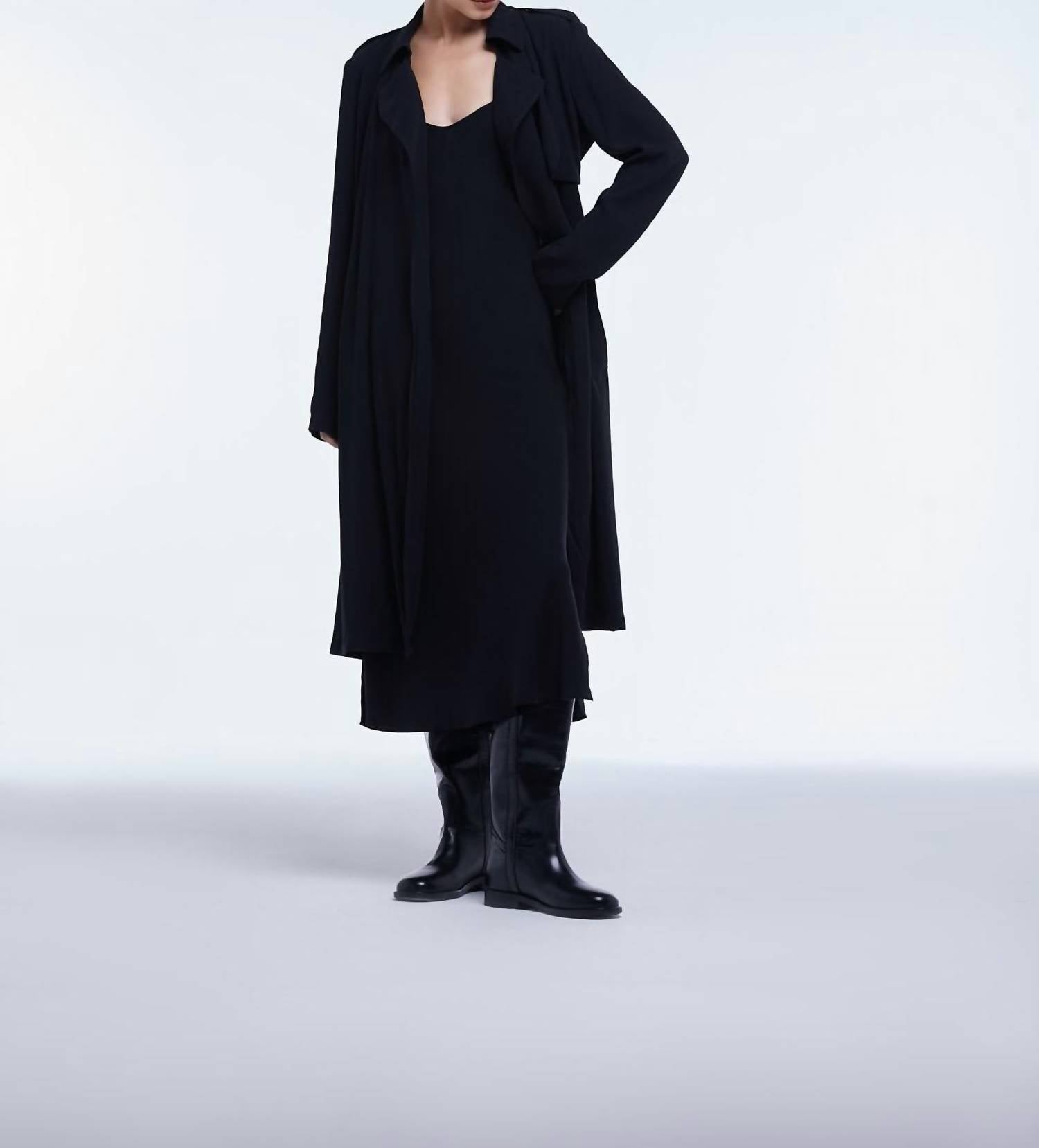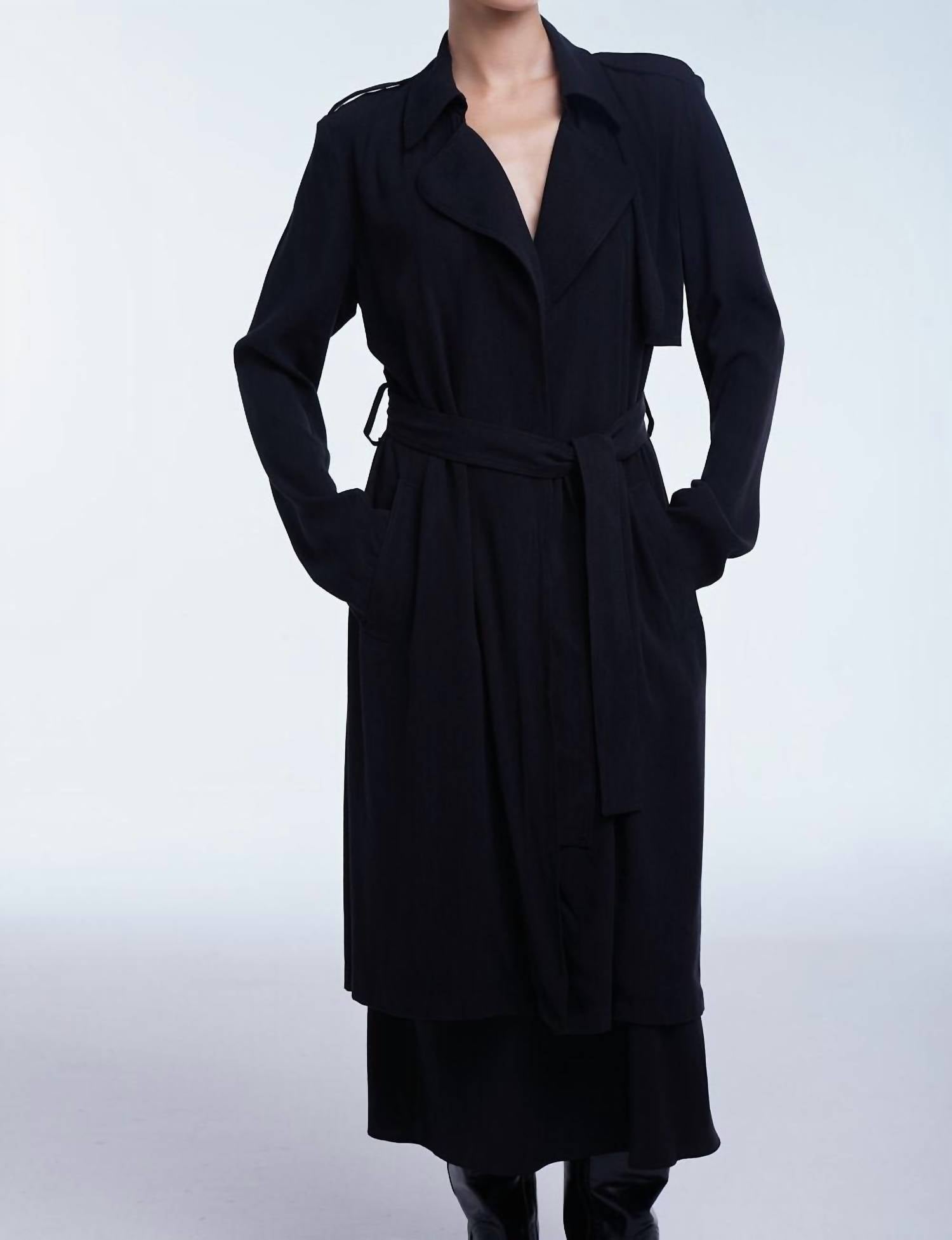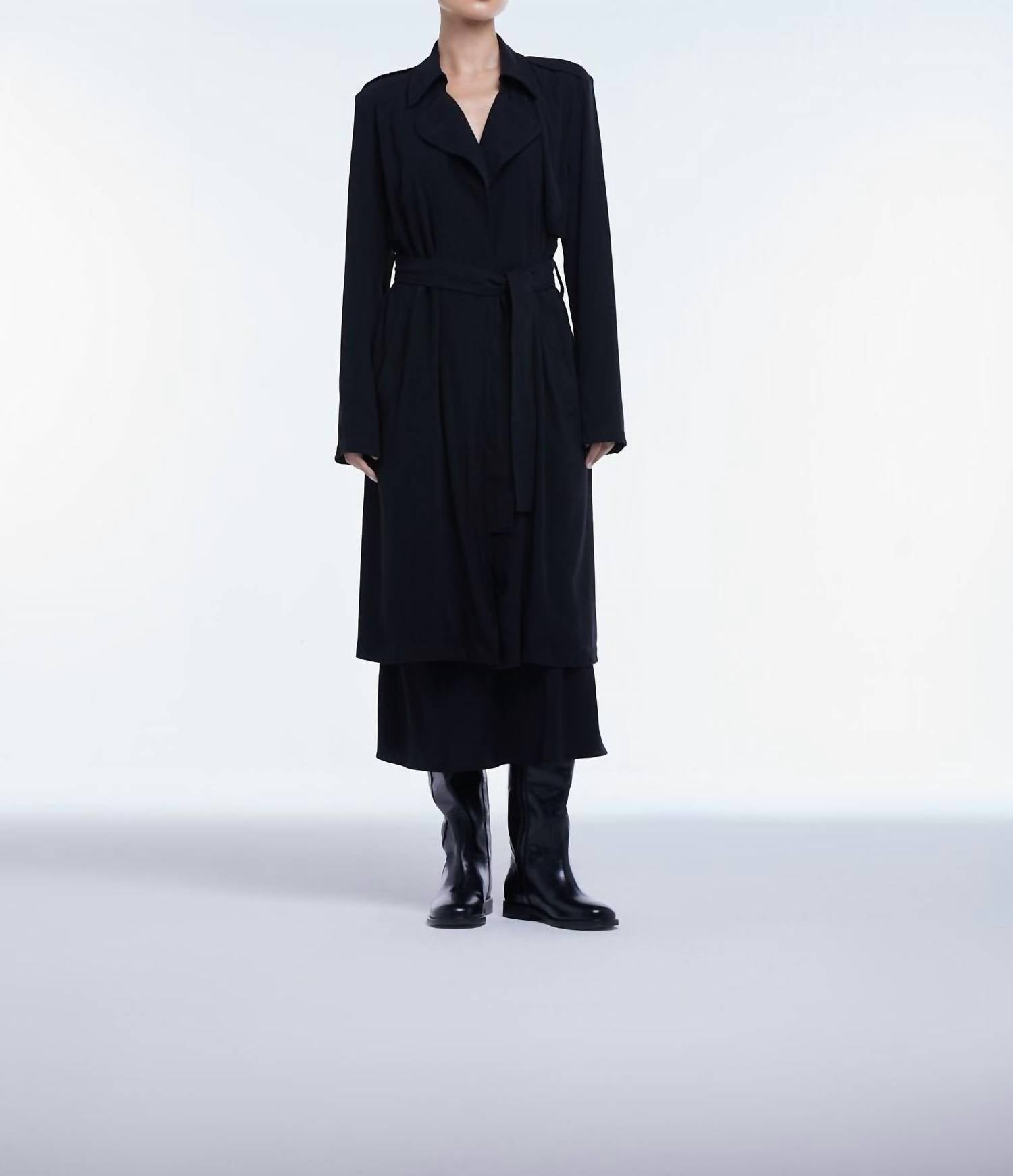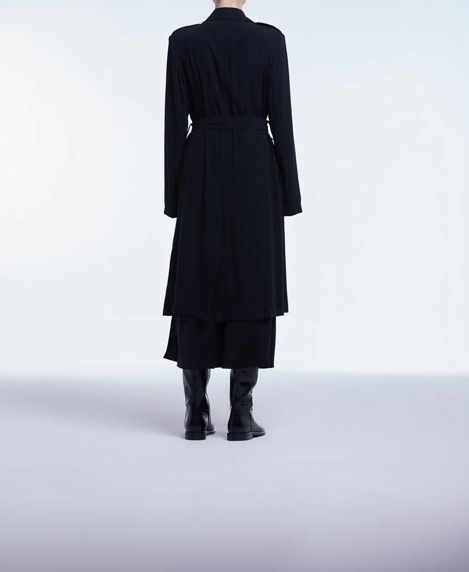 O sobretudo perfeito que você pode usar por cima de qualquer roupa. Apresentamos o Trench Coat Flowy Lapel da Dāl the Label, um item essencial para qualquer estação em preto elegante. Este casaco de manga comprida apresenta um design trespassado com uma gola pontuda clássica e é complementado por um cinto com fivela na cintura. Com detalhes de bolsos no quadril e debrum, oferece estilo e funcionalidade. Fechamento: Fecho de amarrar. Cuidados: Somente lavagem a seco. Perfeito para eventos noturnos de primavera.
