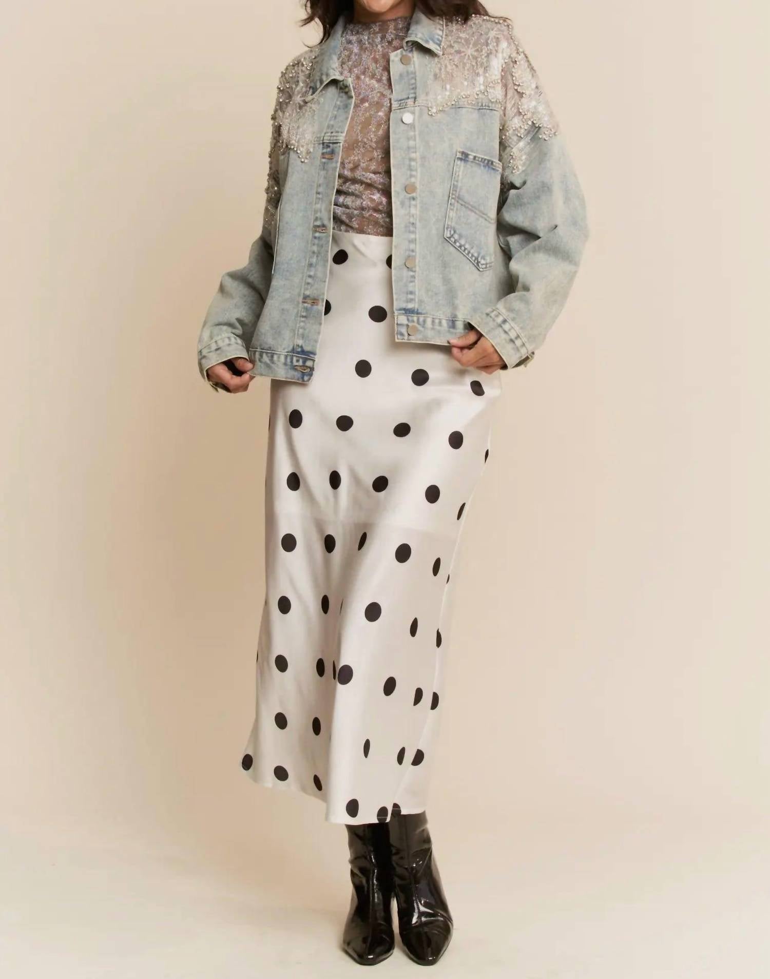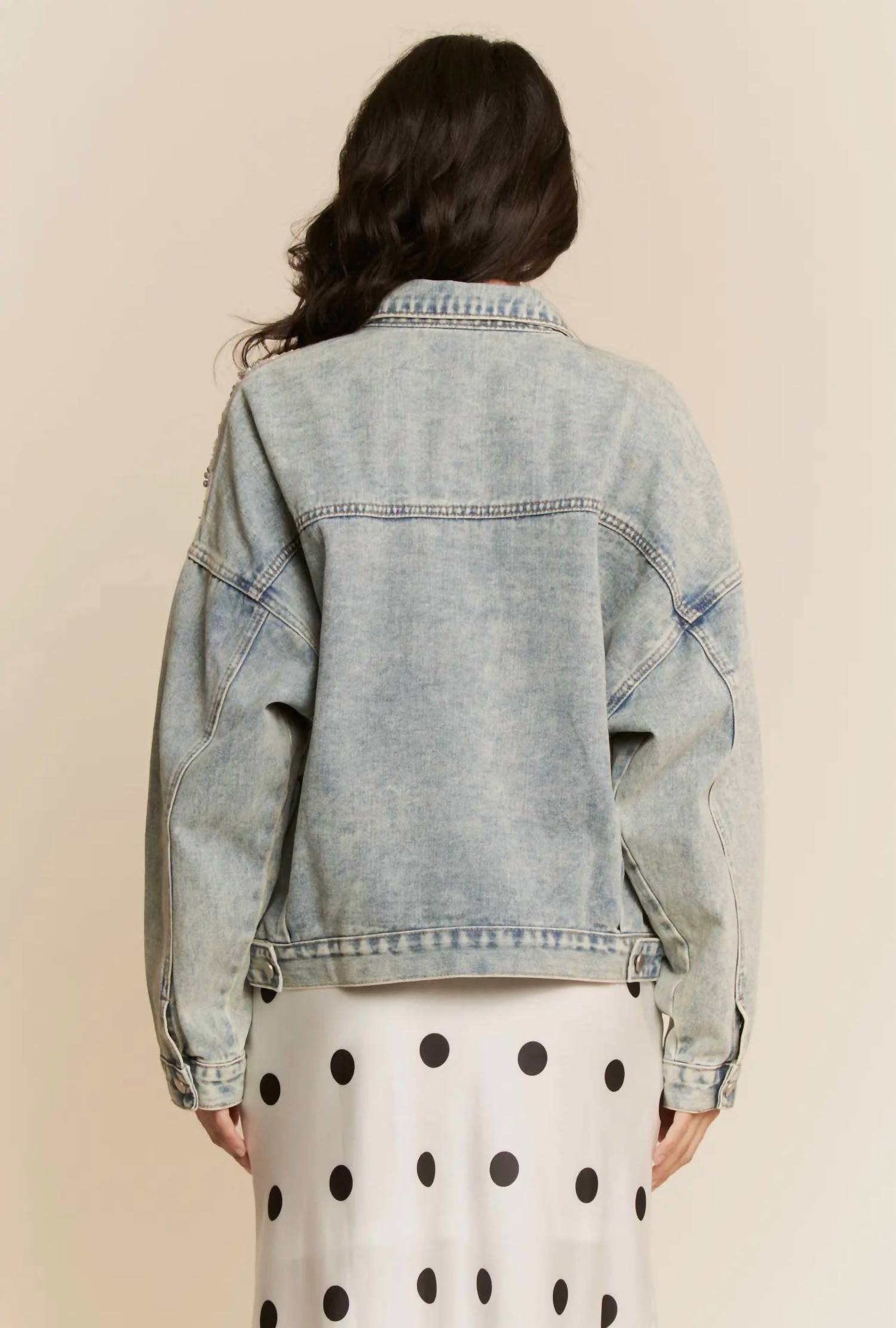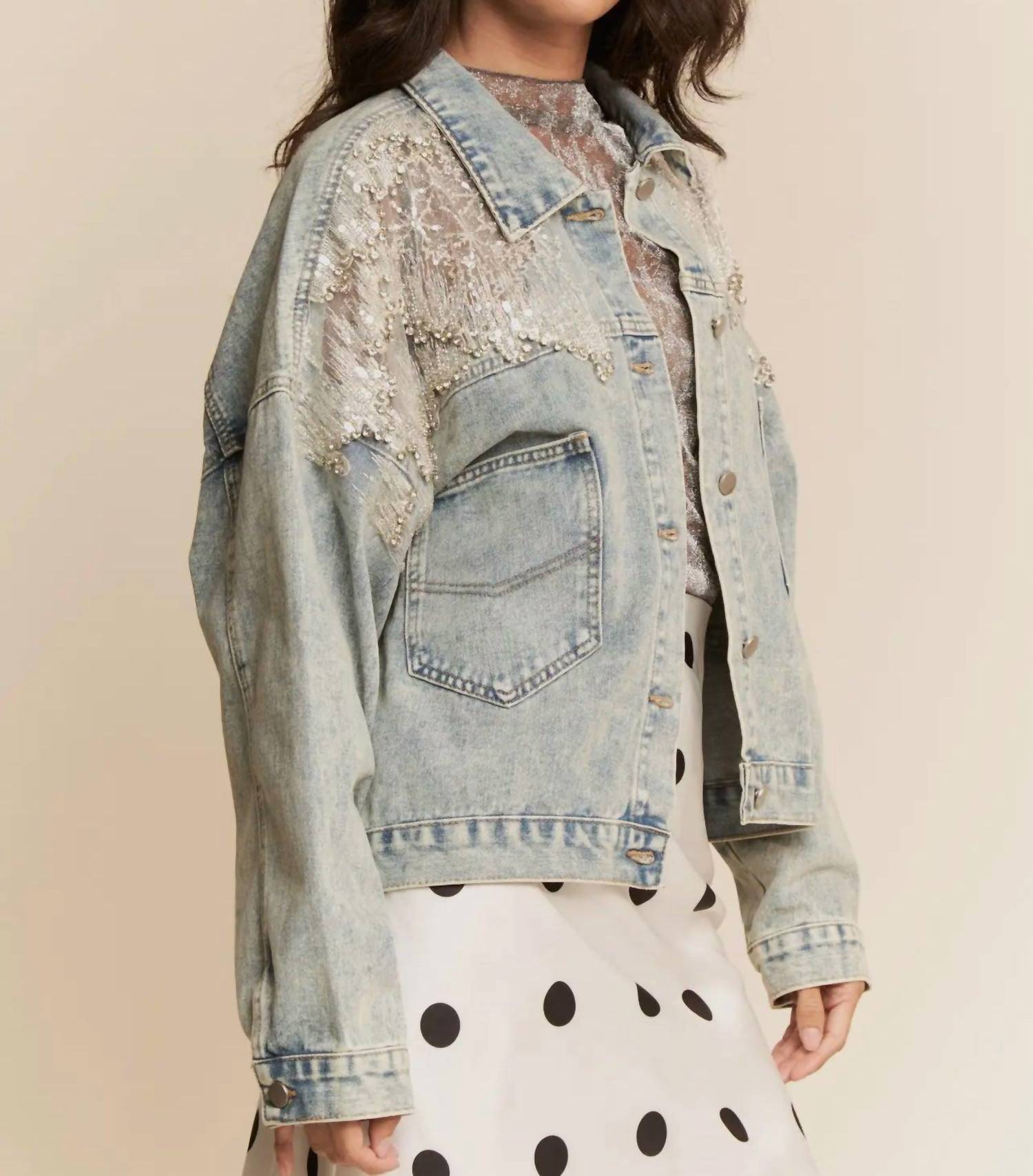 Throw this adorable jacket over just about anything for an effortlessly stylish look. The Mesh Silver Stitching Button Down Denim Jacket by DAVI & DANI combines edgy style with comfort for a grunge-inspired look. This long-sleeve jacket features a textured pattern and convenient pockets, making it perfect for a dinner party or a casual fall outing. Made with attention to detail, the button closure adds a classic touch, while the collar enhances its overall appeal. Easy to care for, just machine wash and tumble dry as needed.