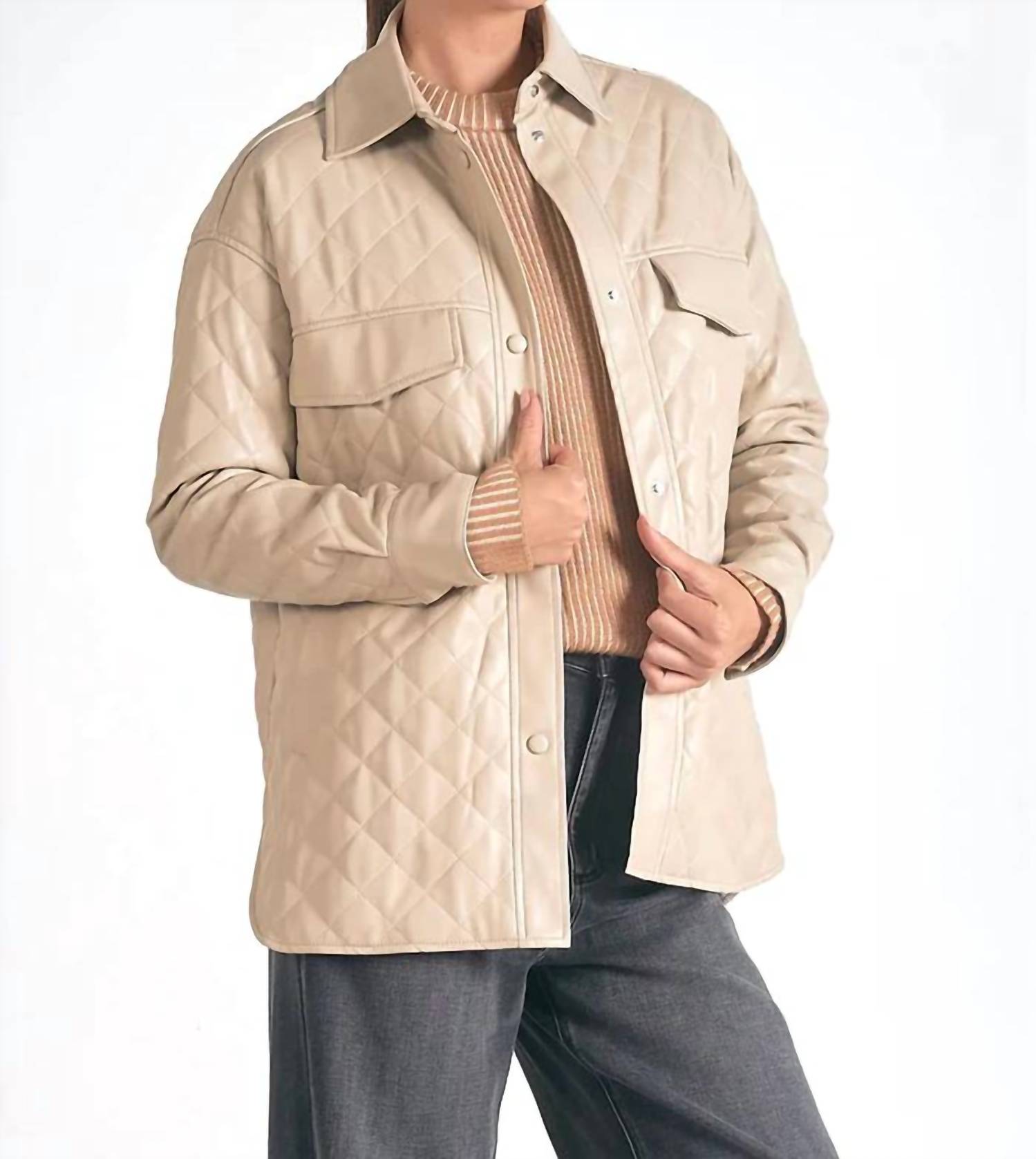 Uma jaqueta de couro tão boa que combina com praticamente qualquer roupa. Combinação perfeita de estilo ousado e apelo clássico. Jaqueta de manga comprida com design acolchoado, confeccionada inteiramente em poliéster. Garante durabilidade e um toque moderno. Destaque para o fechamento frontal por botões e botões de pressão. Oferece bolsos práticos no peito para maior funcionalidade. Caimento fiel ao tamanho.