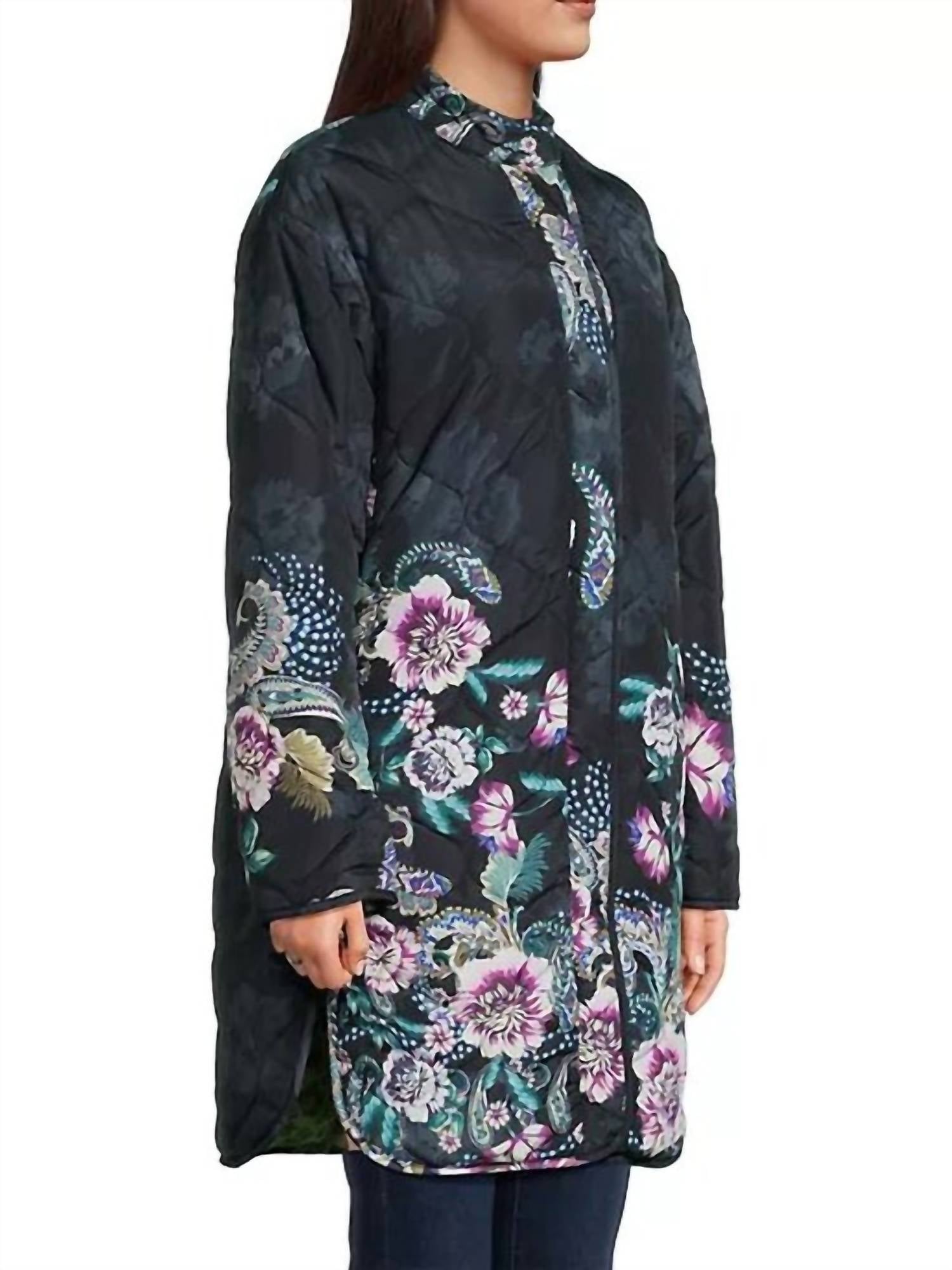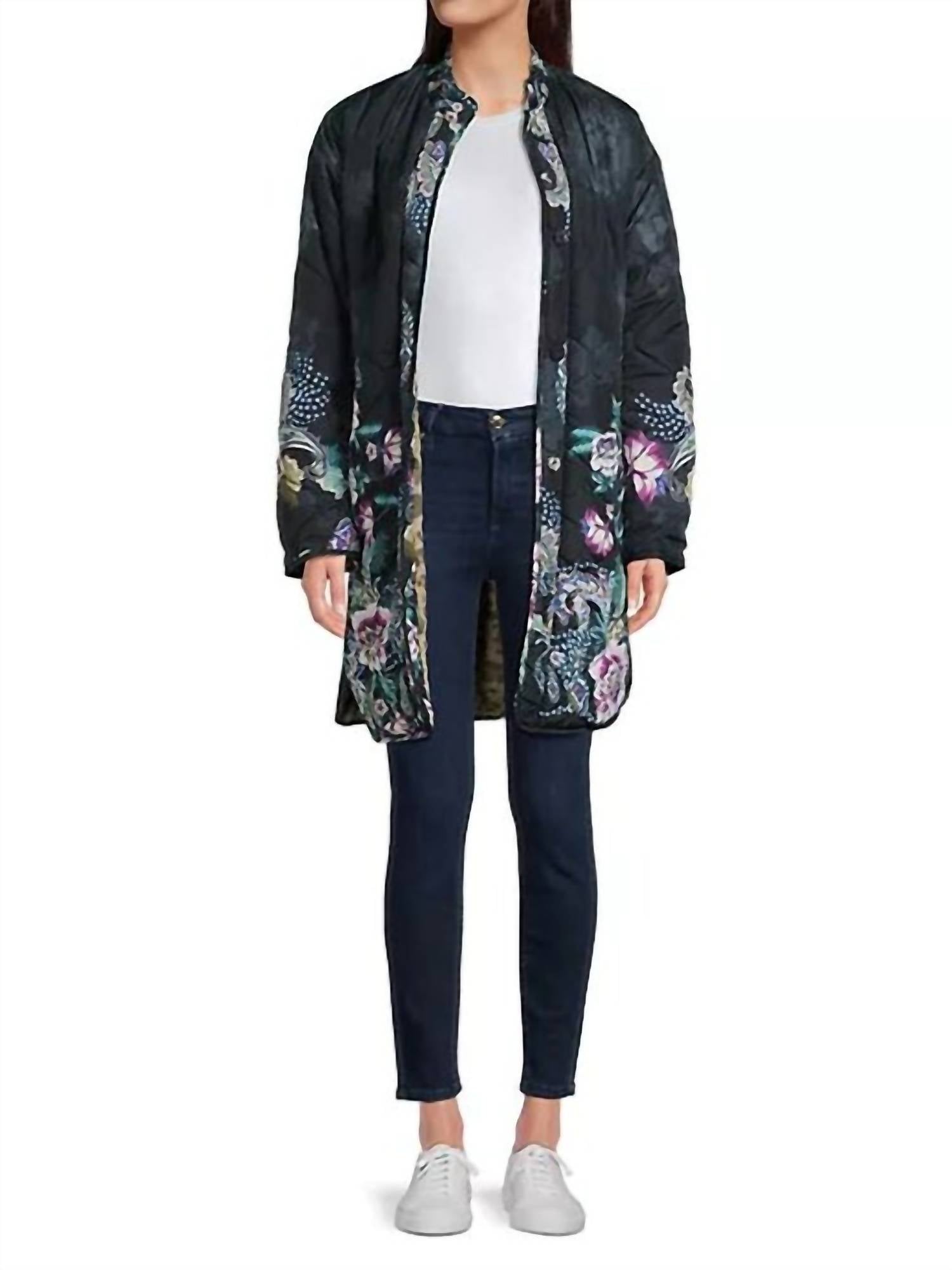 Temperaturas mais amenas significam jaquetas puffer fofas e esta é uma das favoritas dos fãs. A jaqueta Vivi apresenta um design reversível que se transforma de uma divertida estampa floral para uma clássica estampa de oncinha, tornando-a uma peça indispensável em qualquer guarda-roupa. Características adicionais incluem gola redonda, bainha curva e fecho frontal com botões.