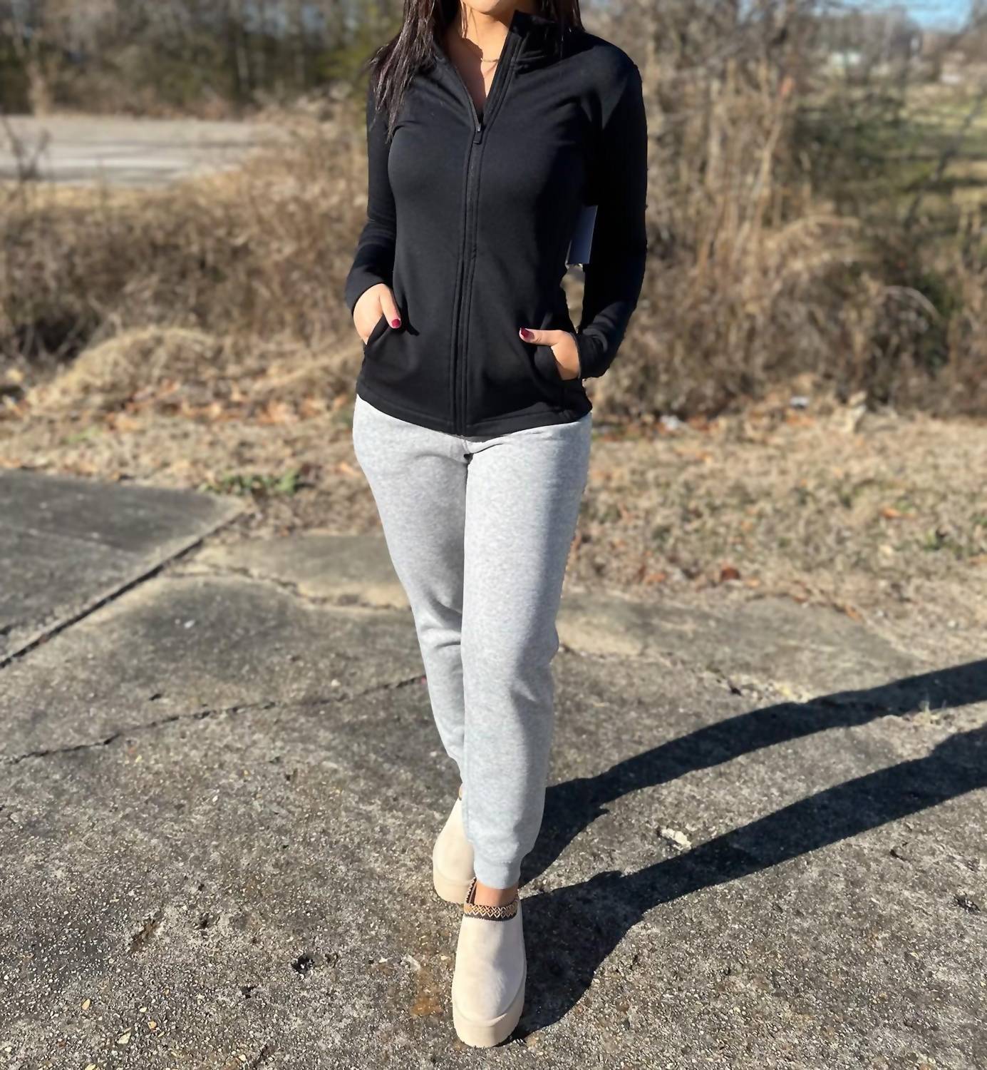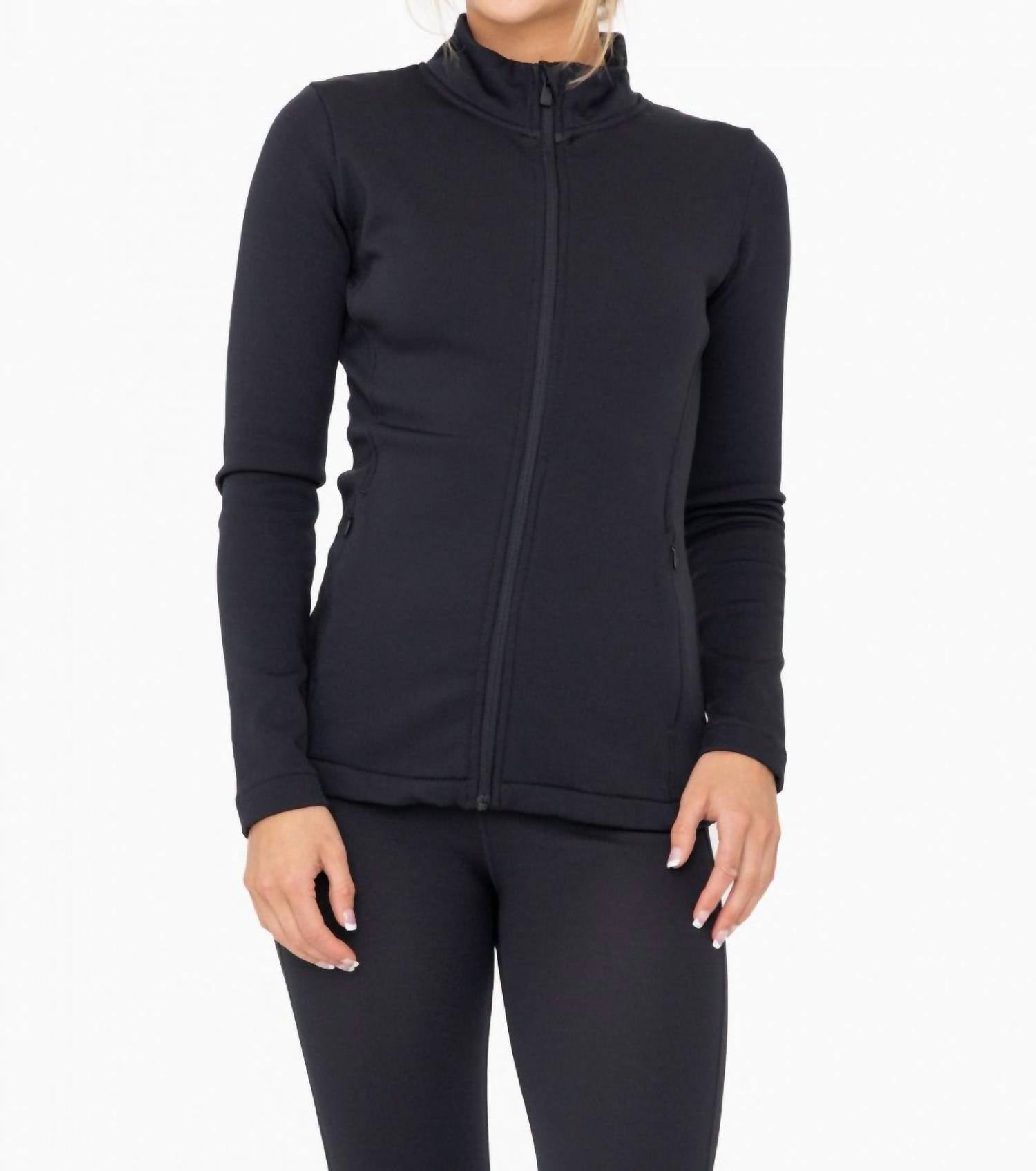 Uma jaqueta casual e descolada que todo guarda-roupa precisa. Apresentamos a Jaqueta com Forro Fleece It's A New Day da Mono B, uma peça elegante e estilosa, perfeita para esportes de inverno. Esta jaqueta casual feminina em preto liso apresenta mangas longas, gola alta e uma combinação luxuosa de 63% poliéster, 25% náilon e 12% elastano para máximo conforto e flexibilidade. Aproveite a praticidade dos bolsos com zíper e do fecho de correr completo, ideal para sobrepor peças e manter seus itens essenciais seguros. Ideal para as aventuras mais frias, esta jaqueta garante que você se mantenha aquecida e elegante.