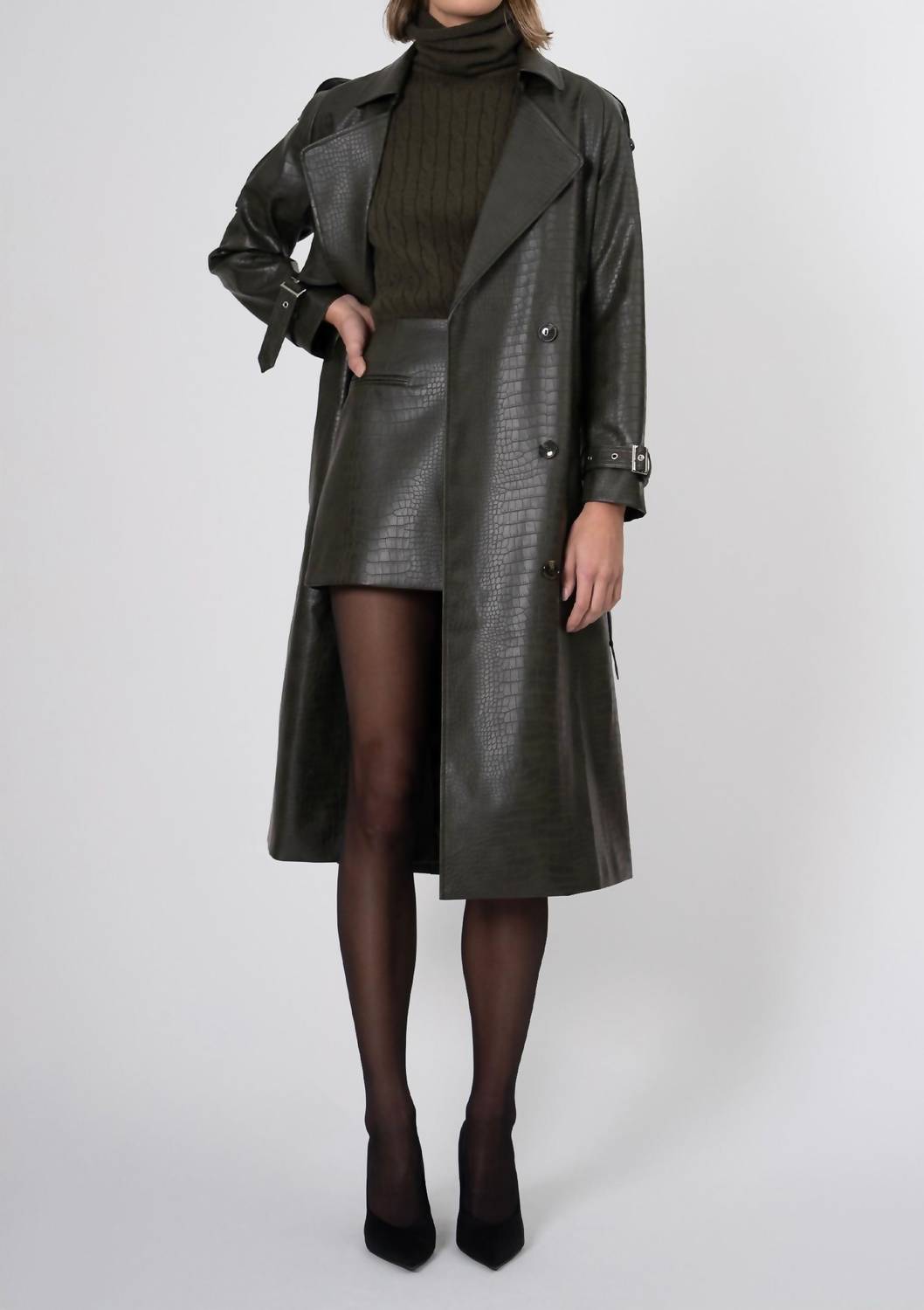 The perfect trench coat that you can throw over any outfit. Meet the Adrian Trench Coat by Nonchalant Label, a textured masterpiece in sophisticated army green that embodies quiet luxury. Designed with long sleeves and a classic collar, this coat is perfect for crisp fall days. The tie closure adds a sleek touch while ensuring a comfortable fit. Ideal for travel and festive Thanksgiving gatherings, it features practical pockets to keep your essentials handy.