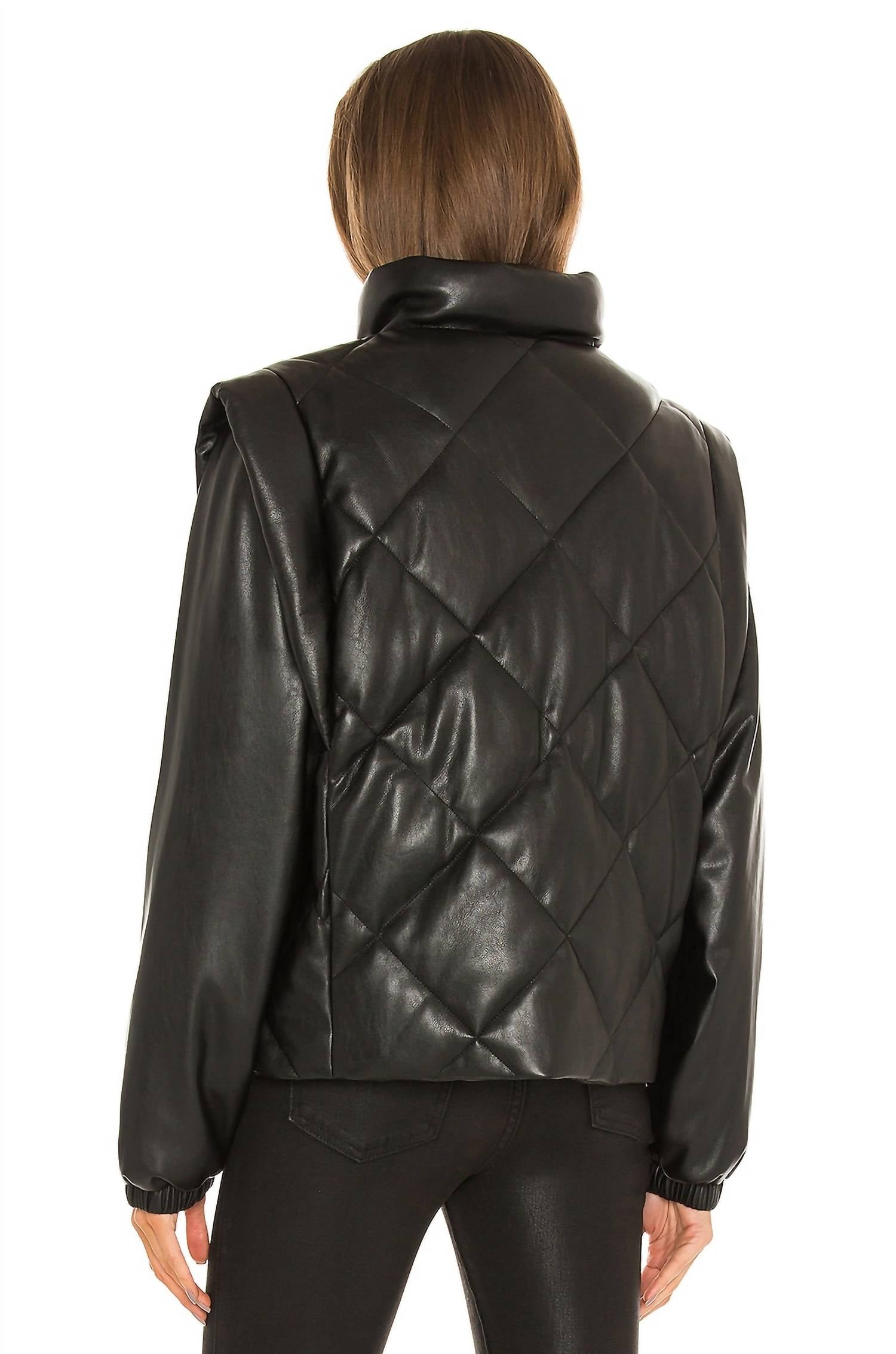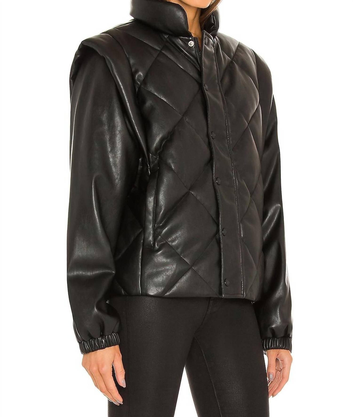 Apresentando a Jaqueta e Colete Puffer de Manga Longa Callista da PISTOLA, uma adição chique e adaptável a qualquer guarda-roupa de inverno em elegante Noir. Esta peça versátil possui mangas compridas e uma composição com exterior em couro vegano acolchoado e flexível com costura diamante. Fabricado na China, oferece um design conversível com mangas removíveis, permitindo que se transforme facilmente de uma jaqueta em um colete. O Callista possui bolsos laterais, punhos elásticos, fecho de zíper frontal com sobreposição de botão de pressão e é forrado para maior aquecimento. Composição: Revestimento 100% Poliuretano, Base 100% Algodão, Forro e Enchimento 100% Poliéster. Cuidados: Lavar somente à mão.