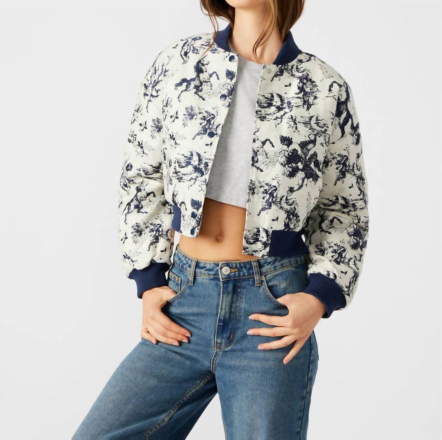 Uma jaqueta casual e descolada que todo guarda-roupa precisa. Conheça a Jaqueta Austen da STEVE MADDEN, uma adição chique e divertida a qualquer guarda-roupa com sua vibrante estampa multicolorida em azul. Esta jaqueta casual feminina de manga comprida combina poliéster e viscose para um ajuste confortável, com forro acolchoado espesso, perfeito para os dias mais frios. Elementos práticos incluem fecho de pressão e dois bolsos frontais funcionais, todos realçados por elegantes detalhes em faixas. Para melhores resultados, lave à mão e deixe secar na horizontal.