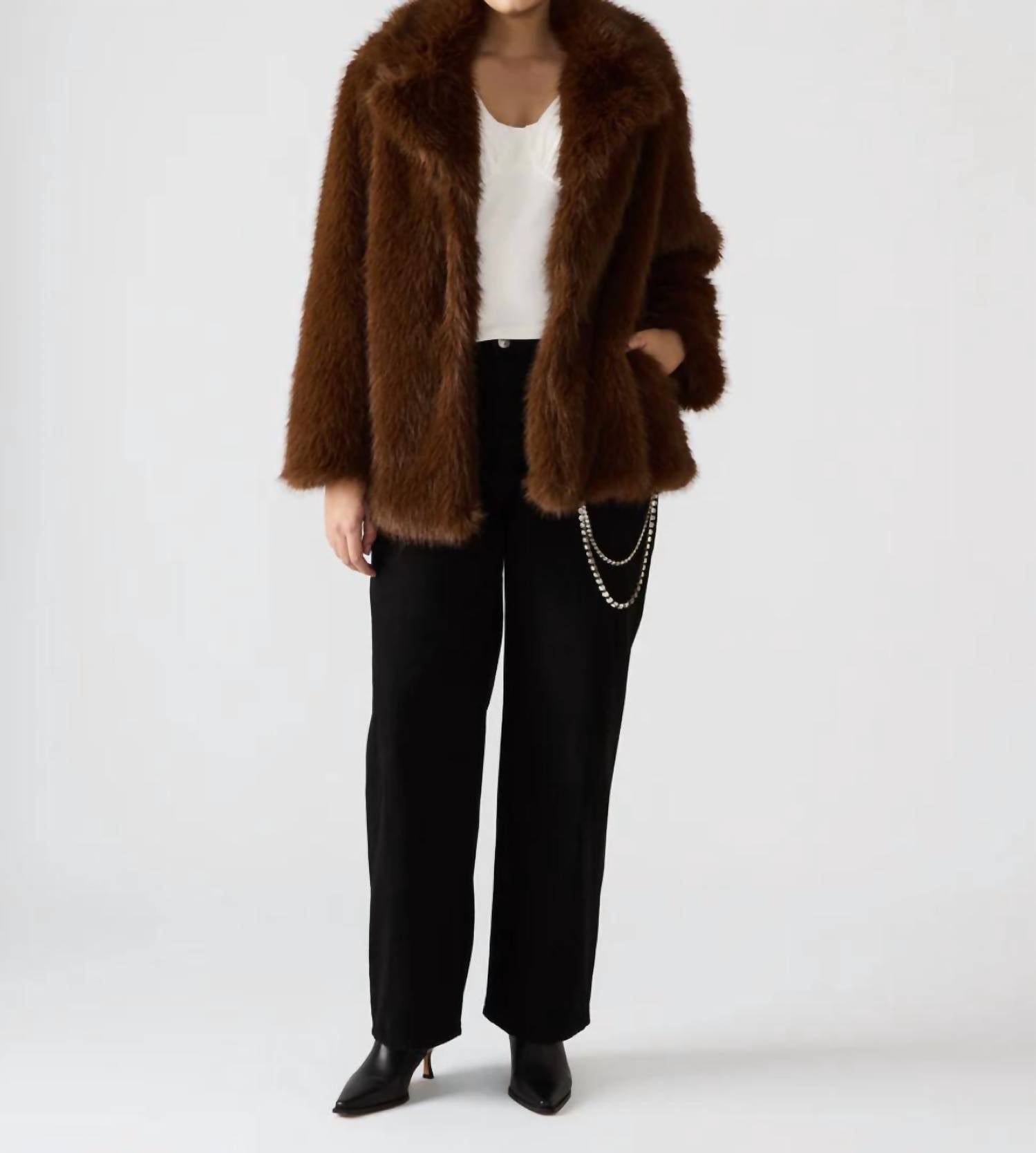 The KINDRA coat is a luxurious faux fur jacket designed to provide warmth and style during colder seasons. Its plush texture offers a sophisticated look while ensuring comfort and insulation. Perfect for elevating any outfit, this coat combines expert craftsmanship with ethical materials for a chic, cruelty-free outerwear option.