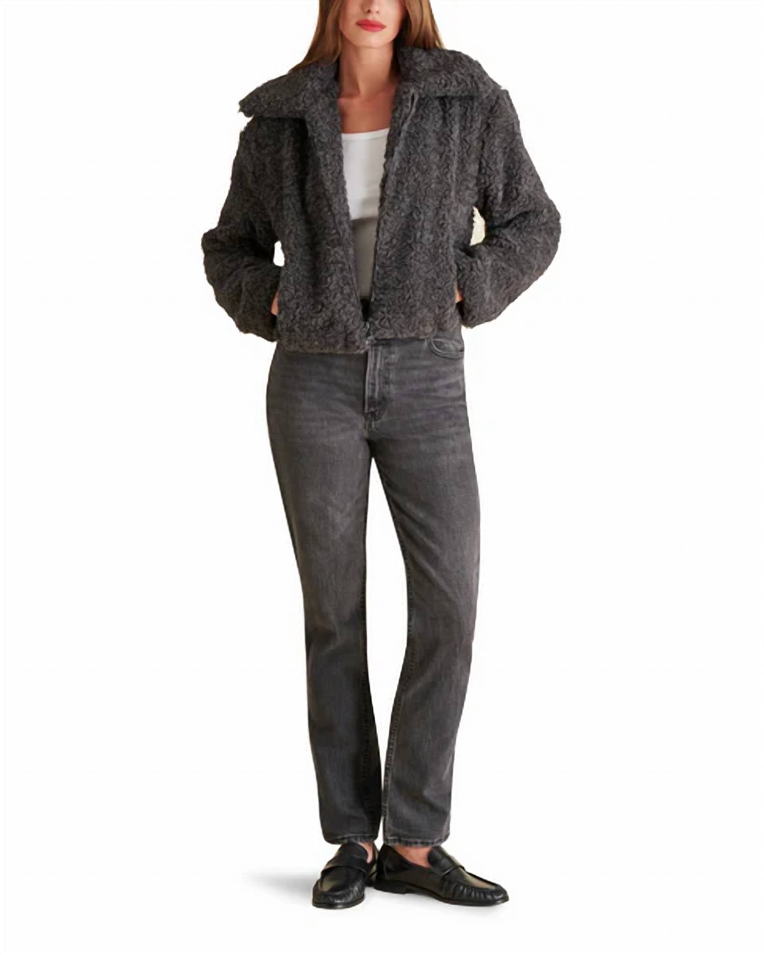 O clima mais frio significa temporada de jaquetas e estamos amando tudo nesta jaqueta de pelúcia atemporal. Apresentamos a Jaqueta Pippin da STEVE MADDEN, uma adição aconchegante à sua coleção em um versátil tom cinza. Esta jaqueta feminina de pelúcia possui mangas longas e é habilmente tecida em 100% poliéster, garantindo um toque macio e durabilidade duradoura. Com um fecho de zíper funcional e bolsos práticos, ela oferece estilo e praticidade. Orgulhosamente importada e confeccionada com acabamento texturizado, a Jaqueta Pippin é um item essencial para combinações sem esforço.