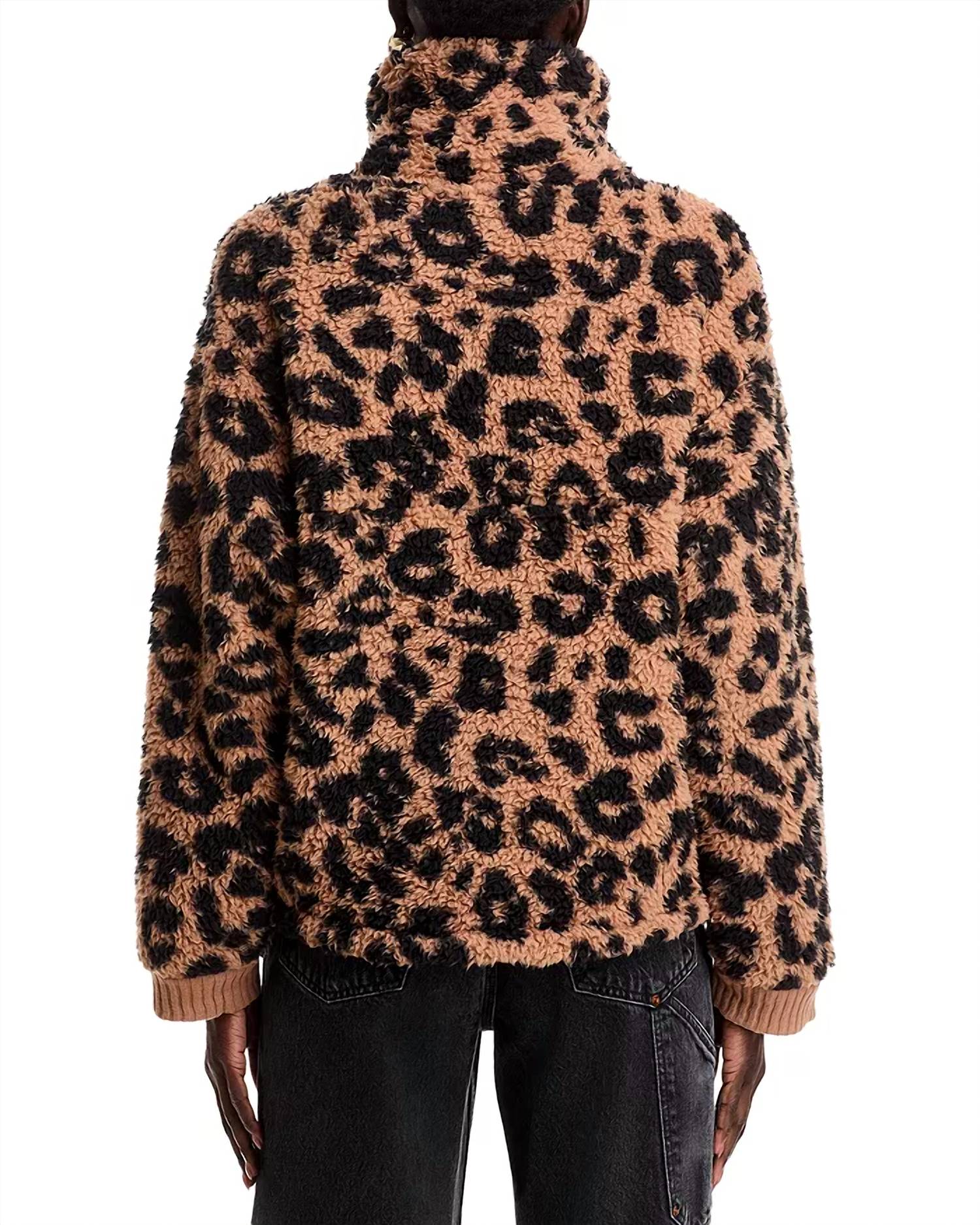 Apresentamos a Jaqueta Sherpa Leopard da Vintage Havana, uma adição chique à sua coleção de jaquetas de pelúcia com uma estampa animal moderna. Esta jaqueta marrom aconchegante possui mangas compridas, gola alta e um prático bolso canguru. Confeccionada em 100% poliéster, ela tem um design estilo pulôver, complementado por um zíper parcial na frente. Esta peça importada é fácil de cuidar e pode ser lavada na máquina.