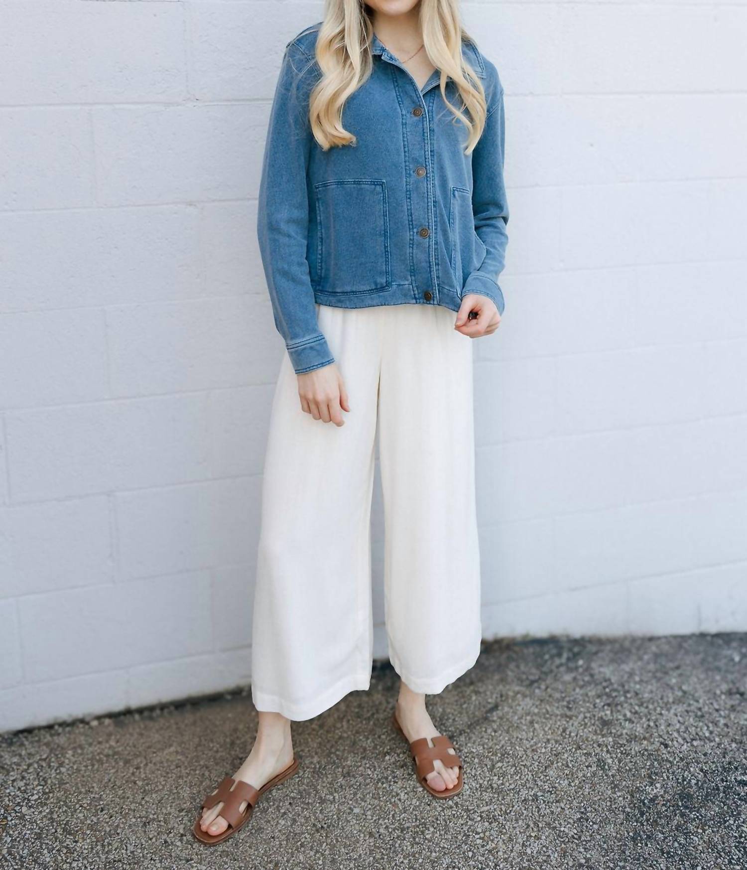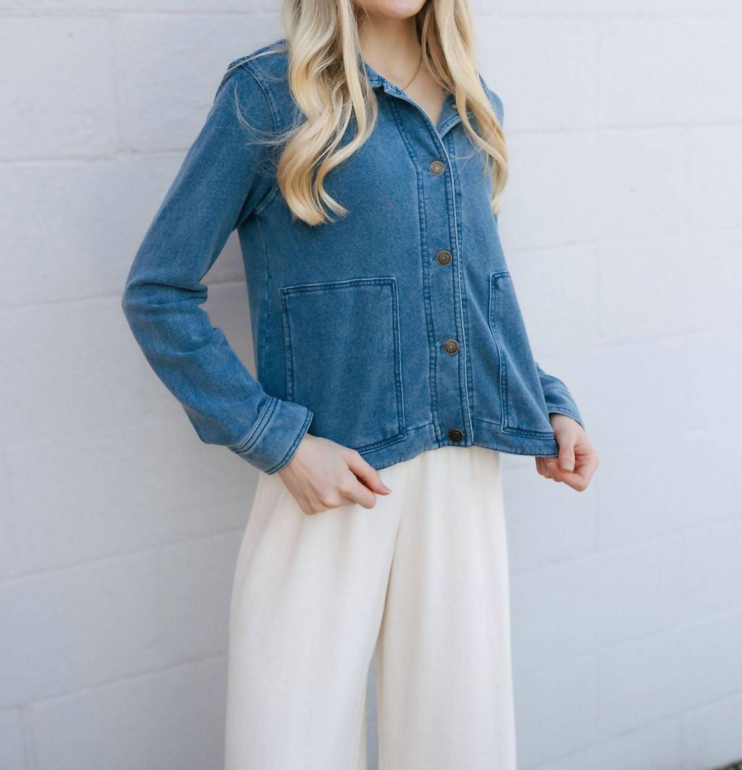 Elevate your seasonal wardrobe with the Bel Air Knit Denim Jacket by Z Supply, rendered in a striking Vintage Indigo. This women's jean jacket features long sleeves, a relaxed fit with a notch collar, and a cropped-mid length for a contemporary silhouette. Crafted from a blend of 85% cotton and 15% polyester, it promises comfort and durability, complete with a stylish button front closure and practical patch pockets. Designed with measurements for a size XS at 21 3/4” garment length from shoulder and 39” bust.