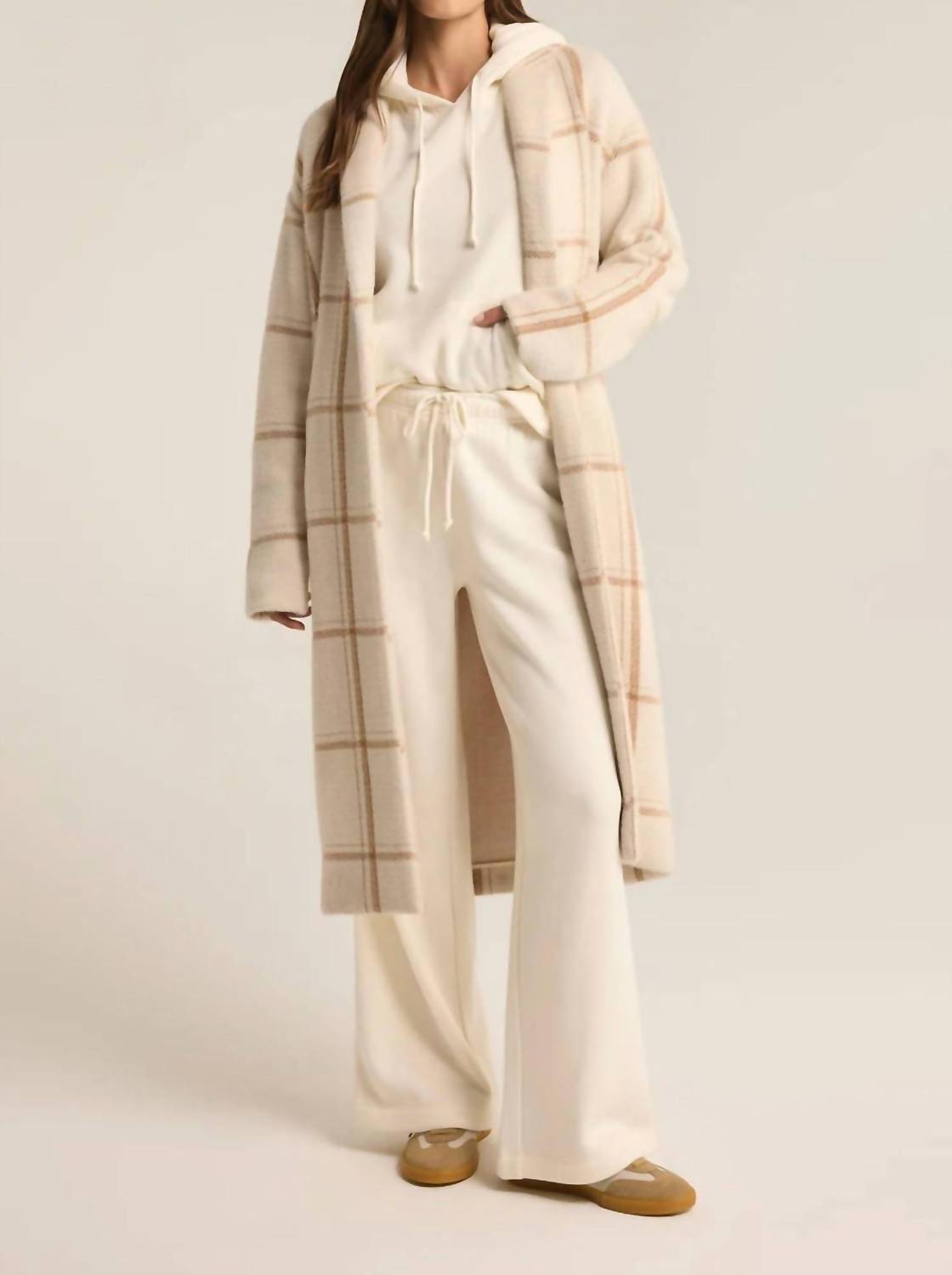 Clássico e chique, este é o tipo de sobretudo que nunca sai de moda. Apresentamos o Casaco Mason Windowpane da Z Supply, uma combinação perfeita de estilo e aconchego em um modelo trench coat atemporal. Este elegante casaco com estampa de sal marinho apresenta mangas compridas e fecho frontal por botões, complementado por uma gola com lapela entalhada. Confeccionado em malha de malha grossa com composição de 57% nylon e 43% poliéster, este casaco de corte regular possui bolsos laterais para maior praticidade. Para facilitar os cuidados, lave na máquina com água fria em ciclo delicado e pendure para secar.