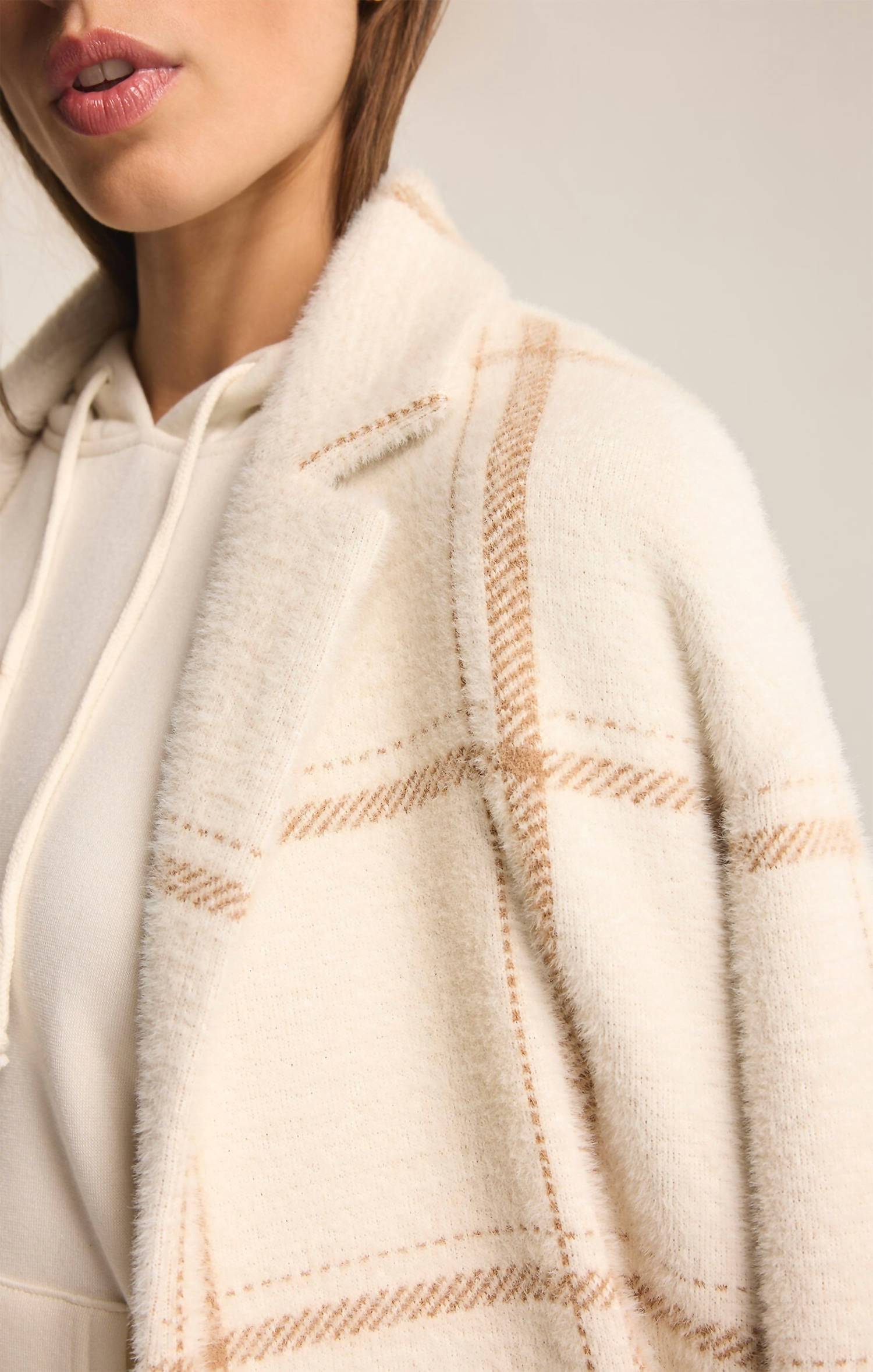 Apresentamos o Casaco Mason Windowpane da Z Supply, uma combinação perfeita de estilo e aconchego em um modelo trench coat atemporal. Este elegante casaco com estampa de sal marinho apresenta mangas compridas e fecho frontal por botões, complementado por uma gola com lapela entalhada. Confeccionado em malha de malha grossa com composição de 57% nylon e 43% poliéster, este casaco de corte regular possui bolsos laterais para maior praticidade. Para facilitar os cuidados, lave na máquina com água fria em ciclo delicado e pendure para secar.