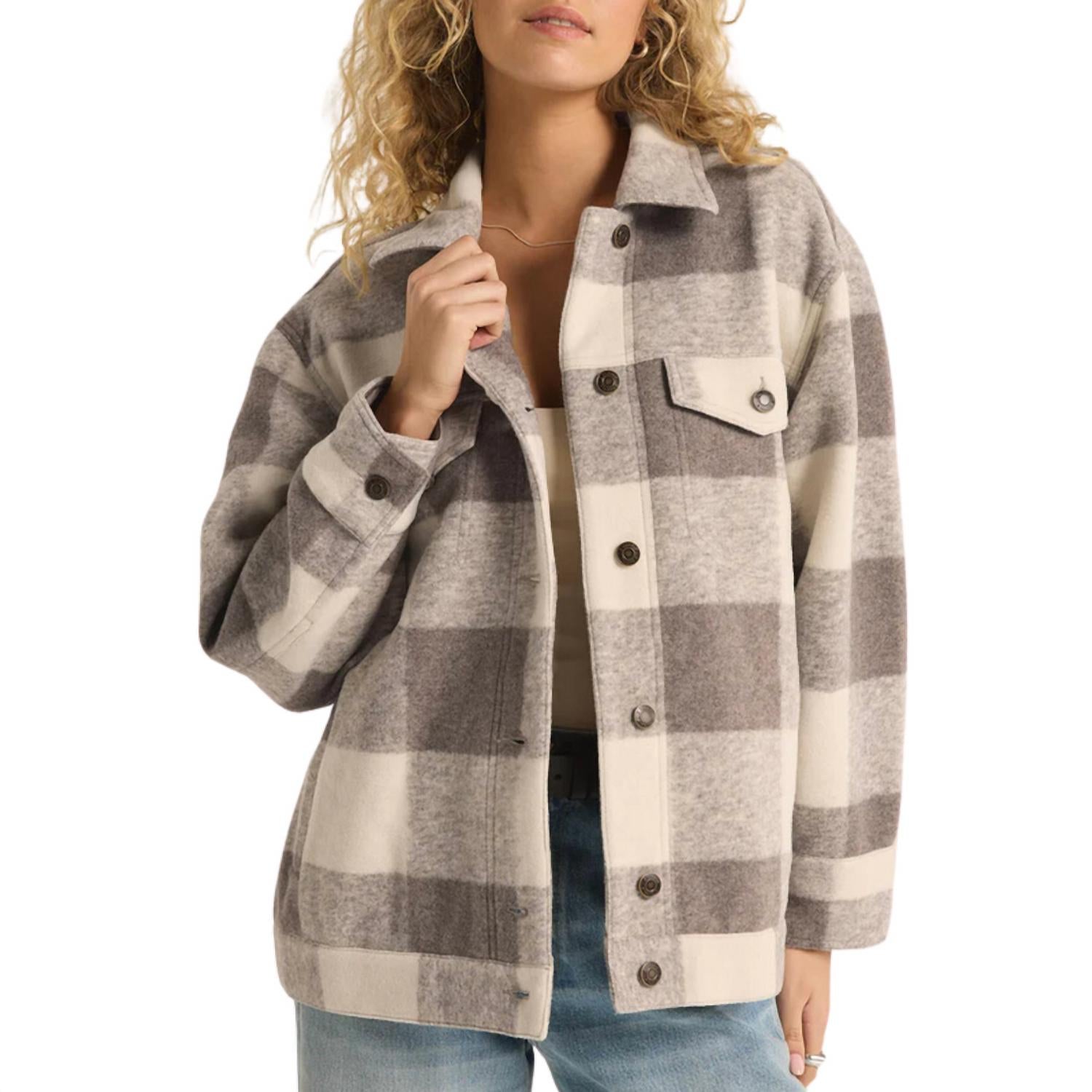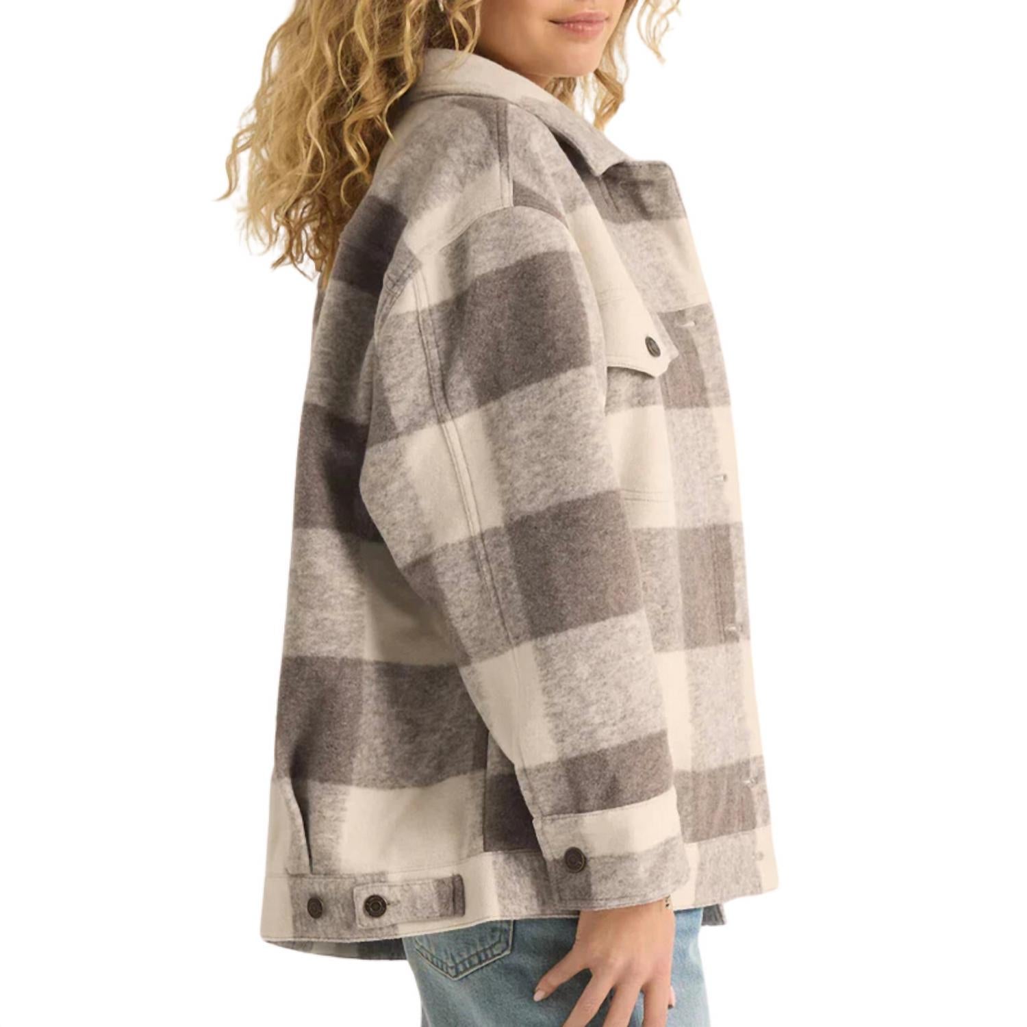 O clima mais frio significa temporada de jaquetas e estamos amando tudo nesta jaqueta de pelúcia atemporal. Jacquard poliéster xadrez Buffalo em cinza ardósia. Design robusto. Gola com mangas compridas. Fecho frontal por botões. Bolsos com aba. Cós ajustável. Lavagem à máquina com água fria, ciclo delicado, secagem pendurada.