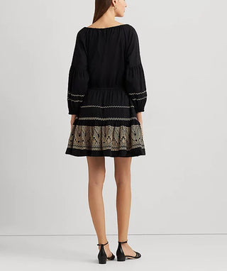 Vestido de voile de algodão bordado LAUREN Ralph Lauren preto/bege