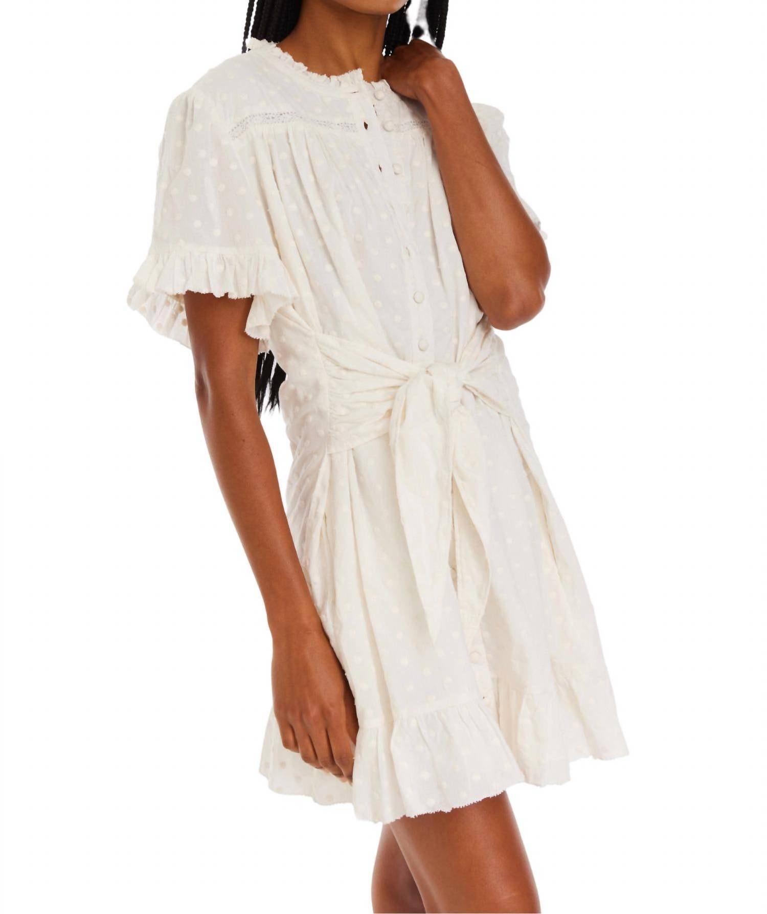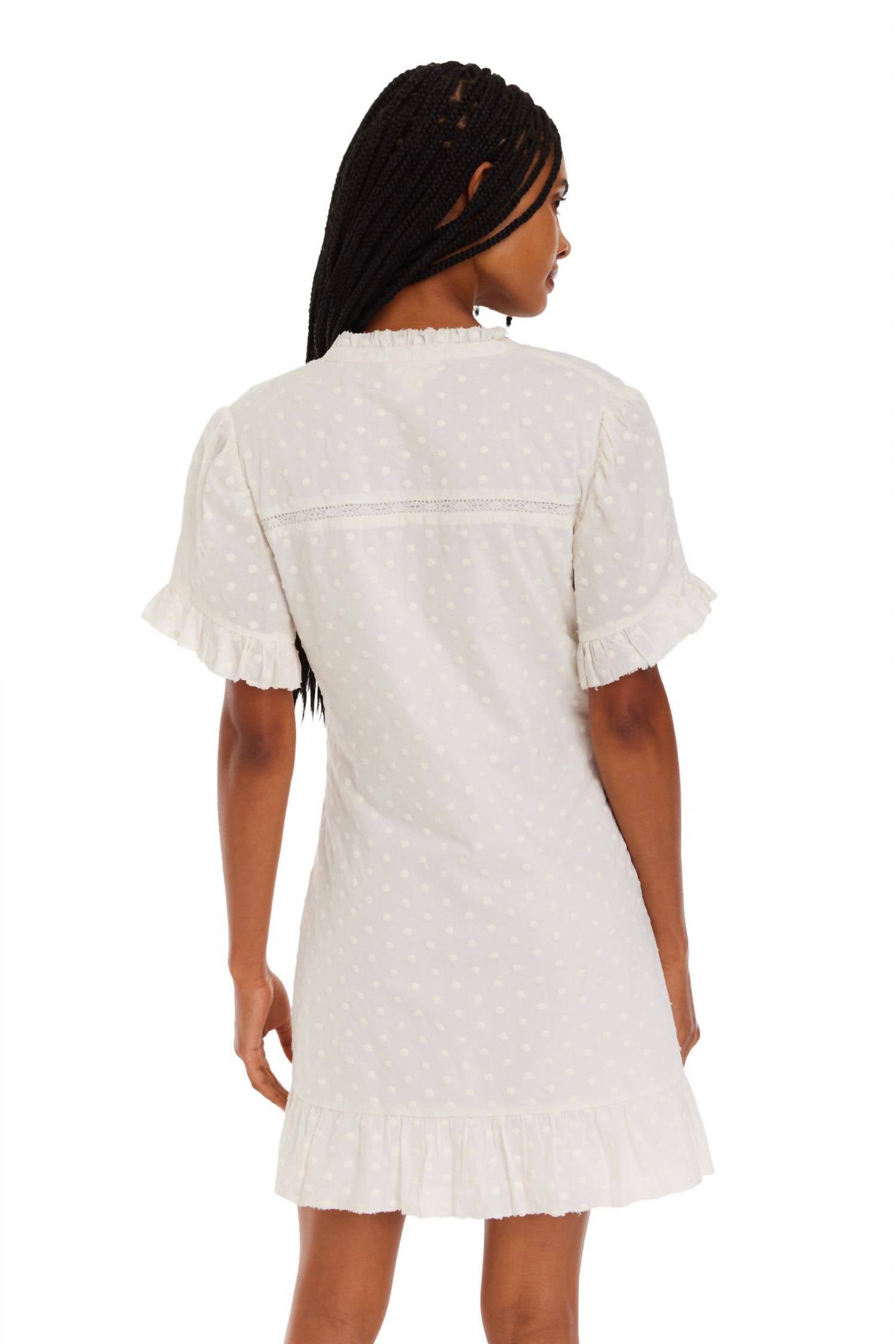 The kind of easy and flattering dress you'll be reaching for all season long. Discover the Roxy Mini Dress by ALLISON NEW YORK, a delightful ivory piece that effortlessly blends comfort with style. This charming dress features short sleeves and a playful button closure, complemented by its flattering 34-inch wrap silhouette. Made from 100% cotton, it boasts a crewneck and delicate white polka dot details, adding a touch of fun and elegance for sunny days or dinner parties. Care instructions are simple with a hand wash and lay flat to dry recommendation.