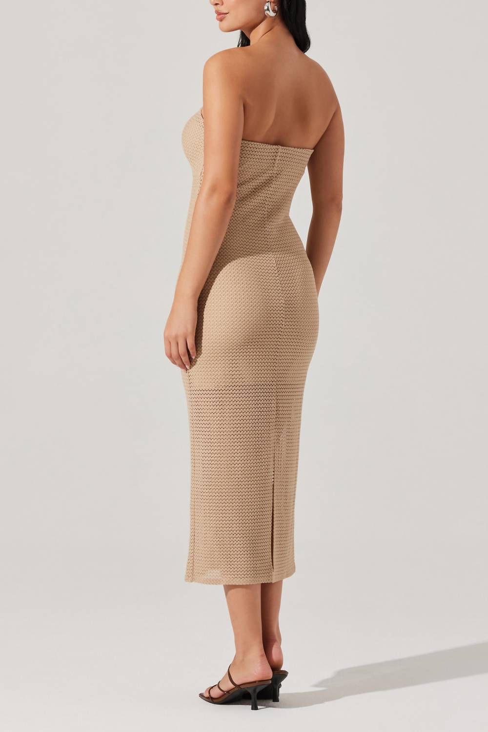 The perfect length dress does exist. The Kasandra Dress by ASTR is an embodiment of boho chic, perfect for your summer vacation wardrobe. This strapless midi dress boasts a textured, natural color that captures sunny beach vibes with its sparkling jewel gold detail. Designed with a bodycon silhouette and a sweetheart neckline, it ensures a flattering fit. Wear with ease using its pull-on closure.