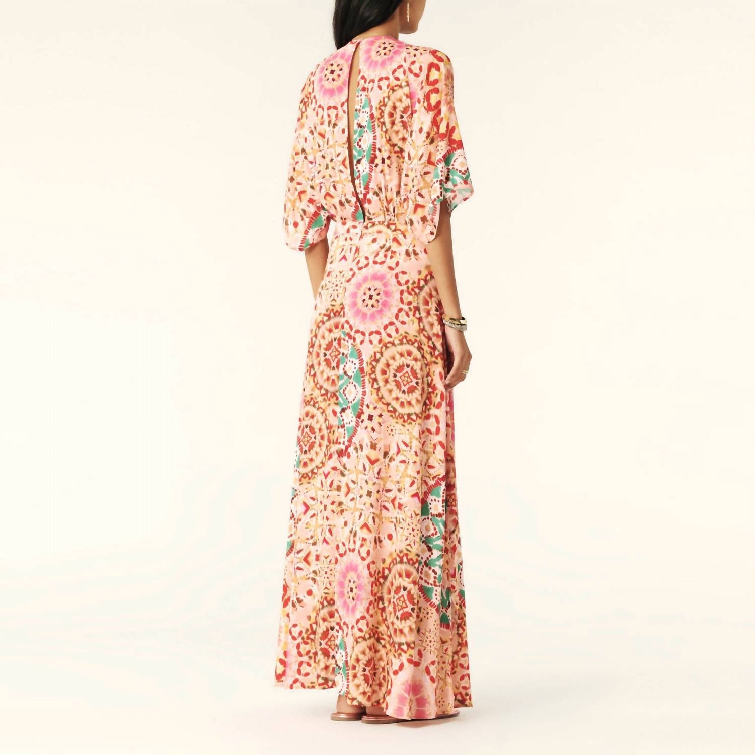 Style this maxi with your favorite statement necklace and sandals for the perfect look. Discover the Licia Wrap Over Dress by ba&sh, an elegant kimono-inspired piece perfect for summer vacations. This maxi-length dress features a wrap V-neckline with a press stud fastening, short flared elbow sleeves, and a chic side slit design. Crafted from a blend of 68% Viscose, 28% Polyamide, and 4% Elastane, it boasts a patterned print in vibrant red and pink hues. Closure: Concealed zip alongside a keyhole and button fastening. Care: Machine wash, lay flat to dry.