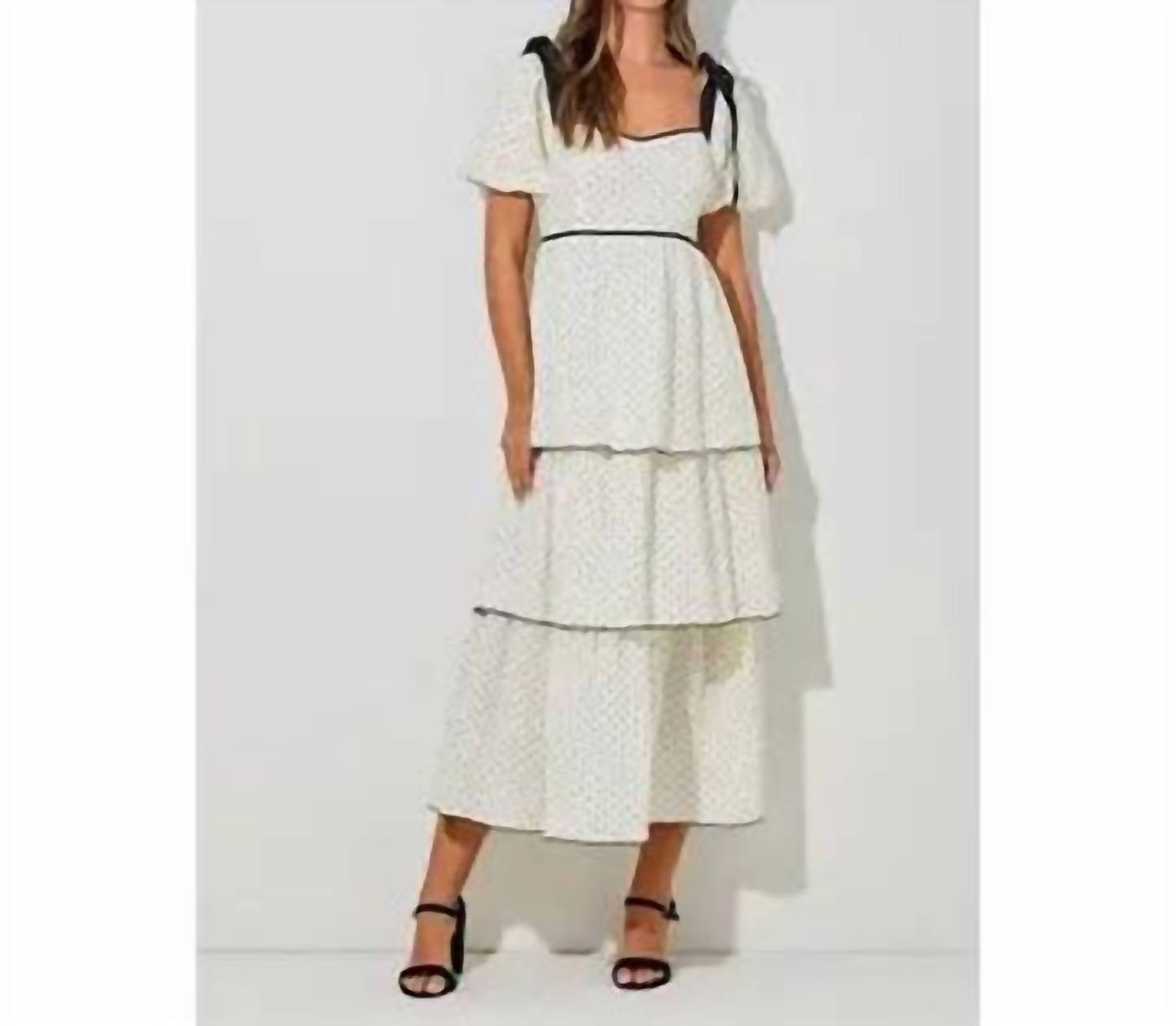 Um vestido midi tão versátil que suas opções de uso são infinitas. Experimente a elegância sem esforço com o Vestido Midi Kat com Bolinhas em Camadas da Baevely by Wellmade. Este vestido possui mangas curtas e é confeccionado em 60% algodão e 40% poliéster, apresentando uma elegante estampa de bolinhas creme e pretas. O fecho pull-on e o decote quadrado complementam a silhueta em corte A, enquanto a estrutura em camadas e os laços pretos nos ombros conferem um toque único. Perfeito para viagens ou férias de verão, este vestido foi desenvolvido para oferecer conforto com forro e requer lavagem à mão e secagem no varal.