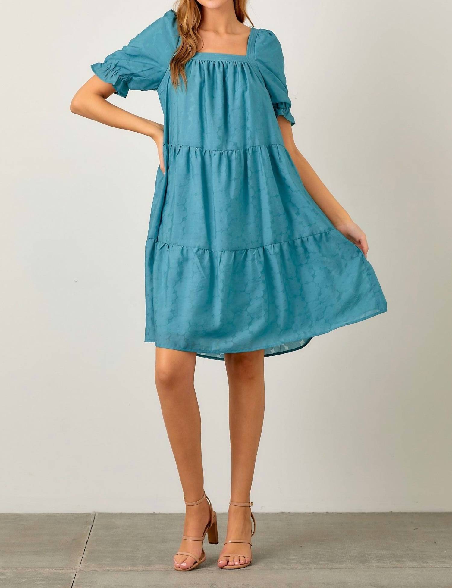 Discover the charming Keaton Floral Burnout Tiered Dress by Baevely, a must-have for your summer wardrobe. The short ruffled sleeves and ribbed square neckline combine with a playful tiered design to flatter any body type. Crafted from soft 100% Polyester in a rich teal floral pattern, it effortlessly embodies boho chic style. With a pull-on closure, this mini shift dress is a perfect choice for holiday parties and other occasions.