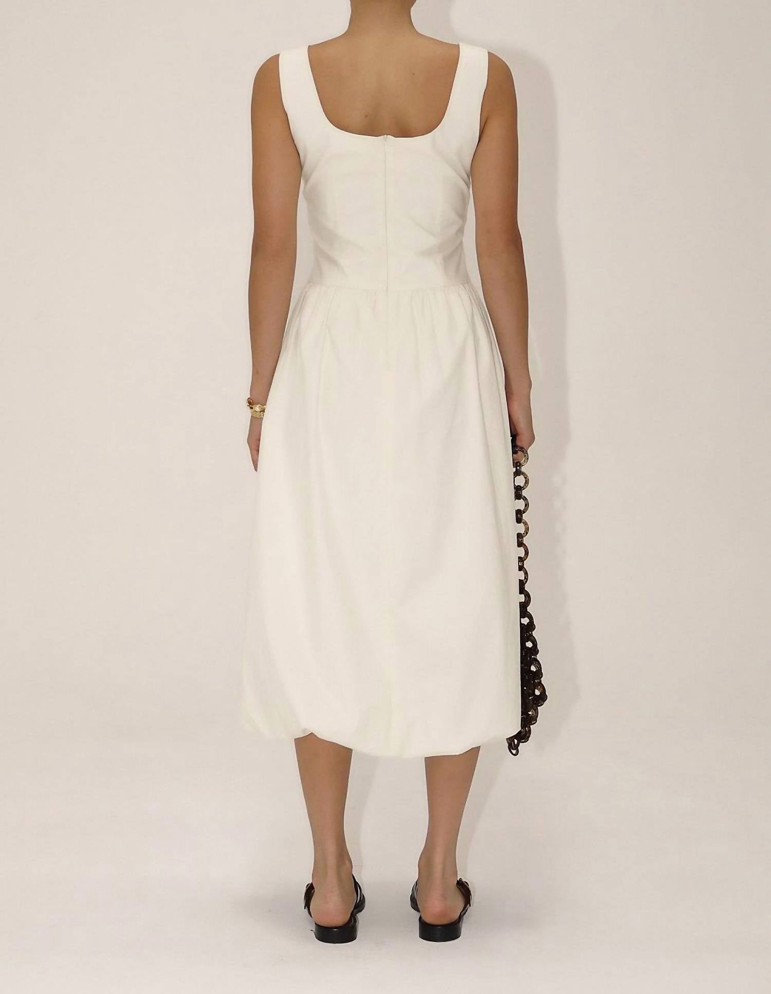 Embrace minimalist elegance with the Ellen Square Neck Sleeveless Bubble Dress by Bailey Rose, perfect for your next holiday party. This cream A-line midi dress features a chic square neckline and is crafted from a comfortable cotton blend with a composition of 65% cotton and 35% polyester. Designed with a convenient zip closure, this women’s dress needs to be handled with care: hand wash and line dry to maintain its pristine condition. Ideal for a Thanksgiving celebration this Spring, its solid pattern ensures timeless sophistication without any added pockets for a streamlined look.