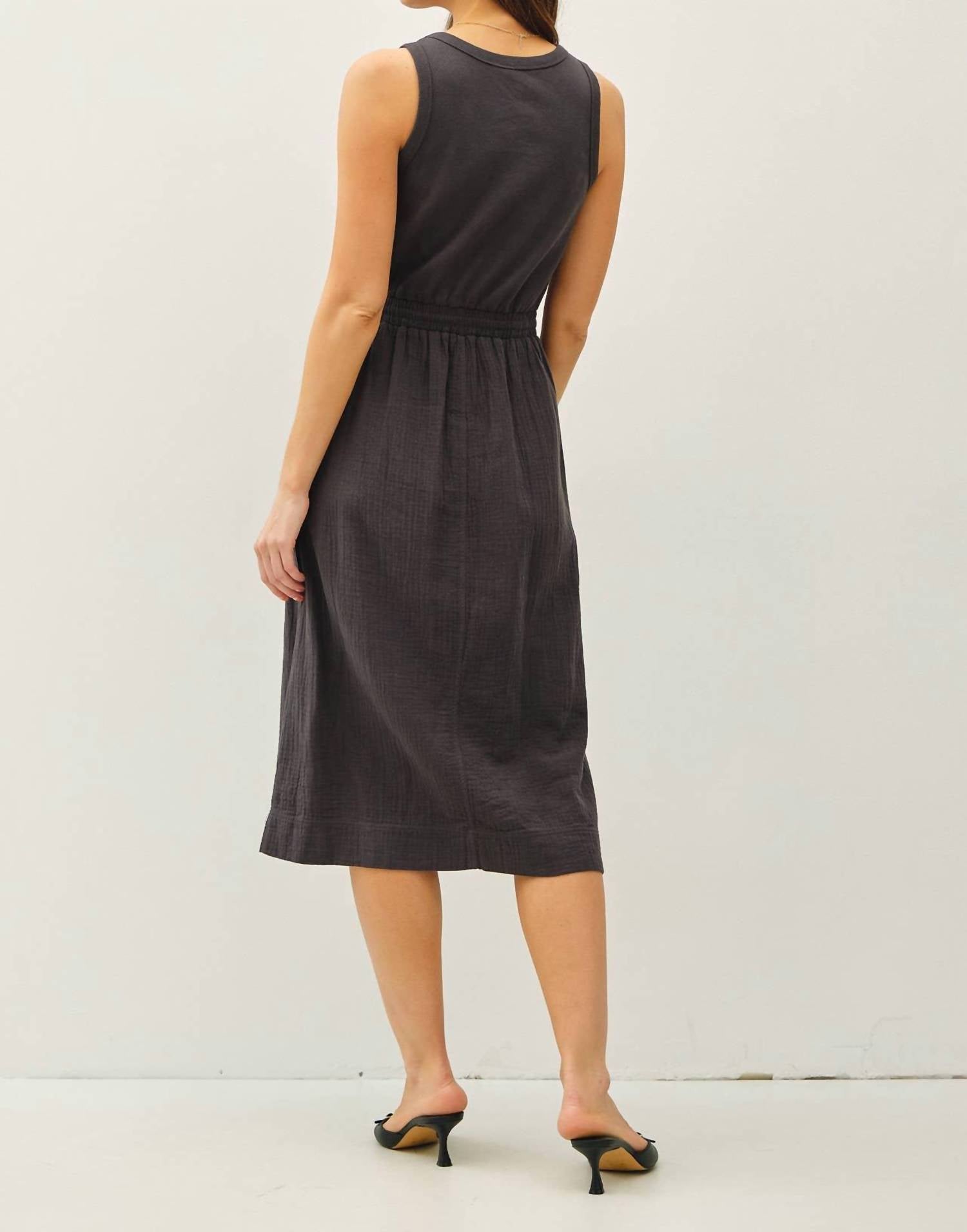 Casual, comfortable and cute! The dress that you'll be reaching for all season long. Discover the effortless charm of the Cotton Tank Dress by Be Cool, a perfect blend of style and comfort for travel and casual wear. Designed with a sleeveless tank top made from 96% Cotton and 4% Spandex, complemented by a 100% Cotton gauze skirt, this shift silhouette dress in charcoal offers a flattering fit. The midi-length piece features a crewneck, pull-on closure, and practical side pockets for added convenience. Machine washable for easy care, this solid dress is your go-to for season-spanning elegance.