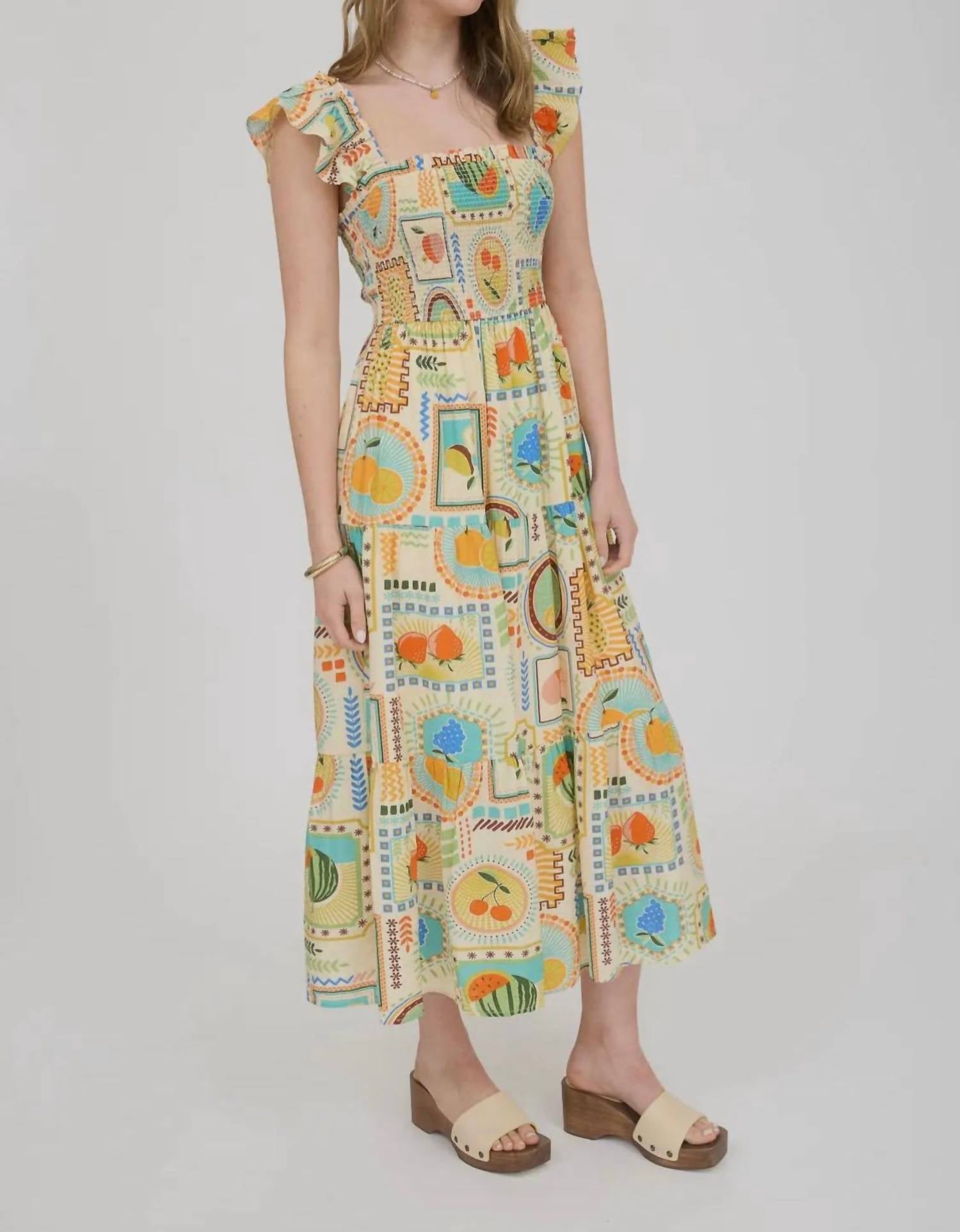 Eleve seu guarda-roupa de verão com o Vestido Patchwork Fruits da Blu Pepper, com uma charmosa estampa de frutas multicoloridas, perfeito para qualquer festa de fim de ano. Este vestido de comprimento midi possui mangas curtas com babados, decote quadrado e corpete franzido para um caimento perfeito. Confeccionado em 85% rayon e 15% nylon, com saia forrada em 100% poliéster, oferece uma silhueta em A com estilo sem esforço. Fechamento: Puxe para vestir. Cuidados: Lavar à mão e secar no varal. Ideal para ocasiões casuais e de Ação de Graças.
