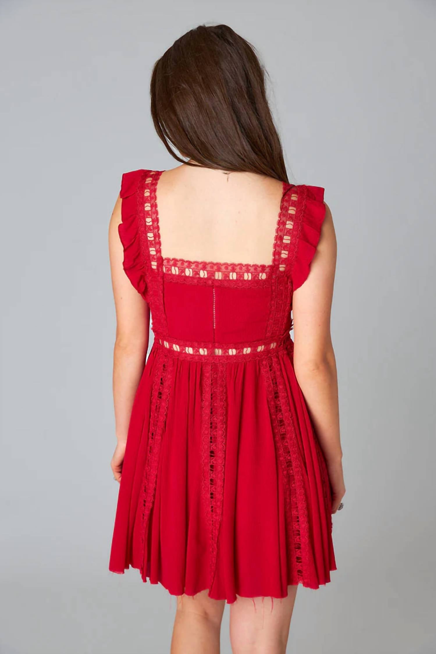 Get ready to turn heads with the Adams Mini Dress by BUDDYLOVE, perfect for any springtime occasion. In striking crimson, this A-line mini dress features a charming sleeveless design and a trendy monochrome pattern. The dress showcases smocked side panels, flutter sleeves, and intricate crochet details with a convenient pull-on closure. Pair it with your favorite footwear for a stylish and versatile look.