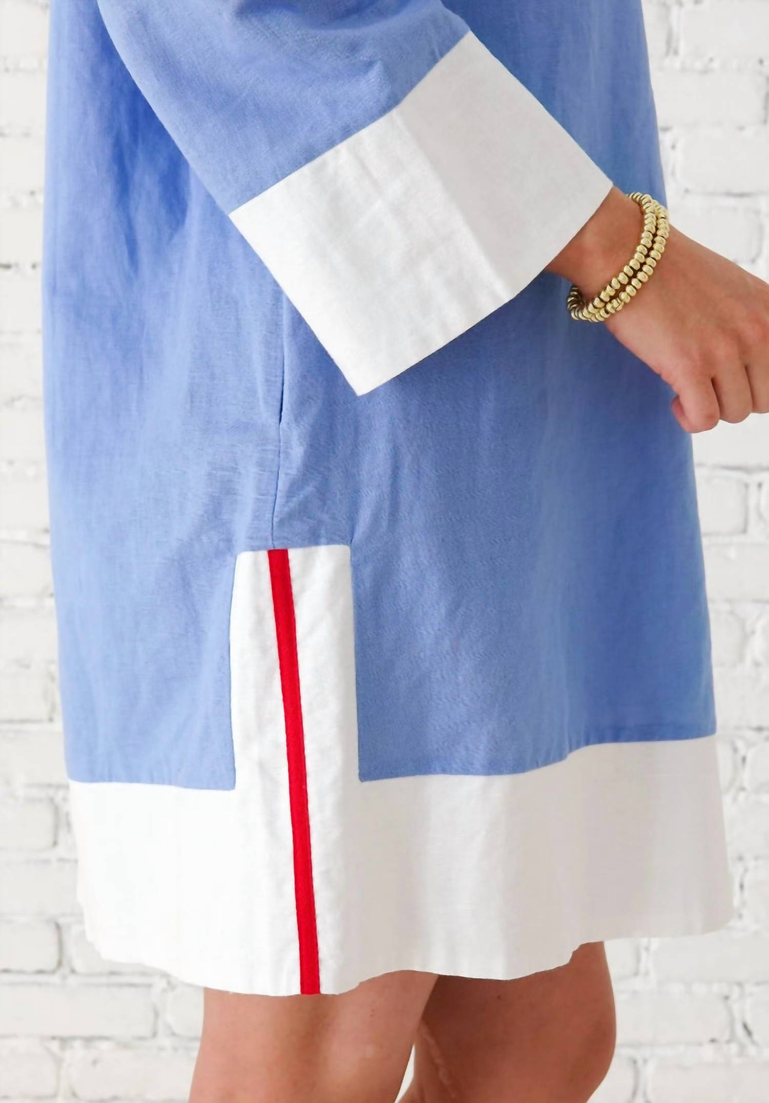 Discover the Caryn Lawn Carrie Dress, a caftan-style shirt dress perfect for your spring wardrobe. With long sleeves and an elegant collar neckline, this dress features striking red detailing on the sides, adding a touch of sophistication. The solid pattern and button closure combine for a classic, polished look, while pockets add practical charm. Ideal for a holiday party, this dress is crafted without specific care instructions provided.