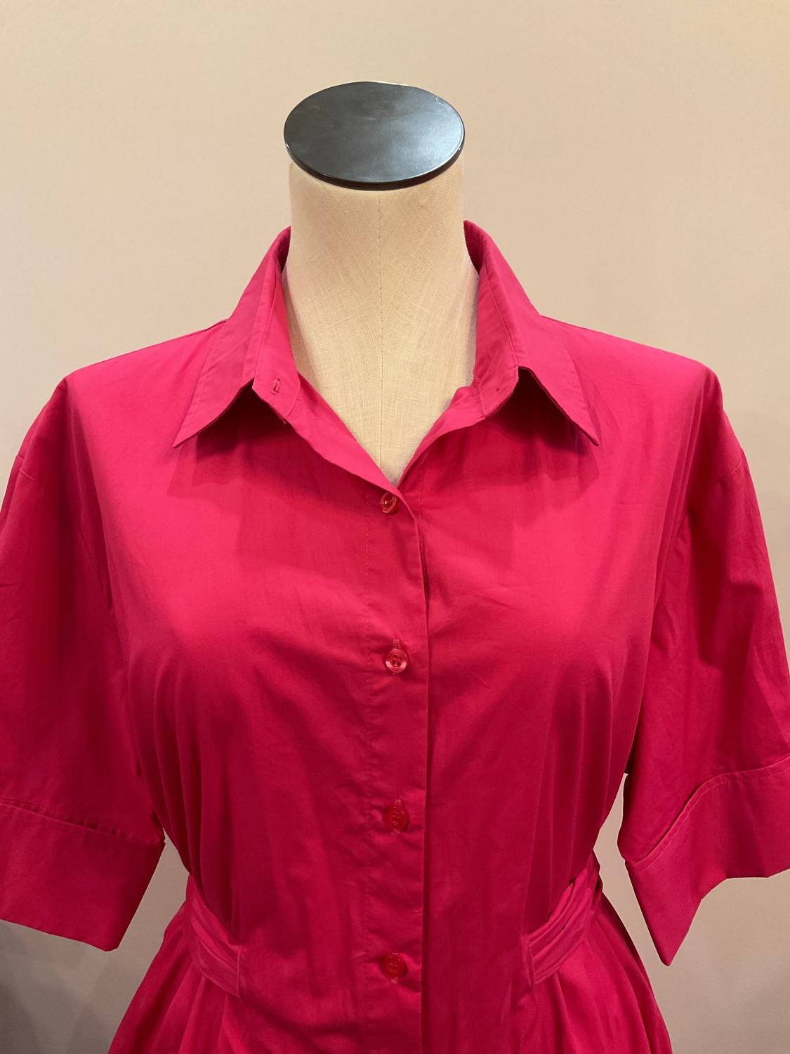 The perfect mini dress for those warmer months. Introducing the Charlotte Mini Dress by Caryn Lawn, a vibrant one-size red shirt dress perfect for making a statement. This piece features short sleeves, a classic collar, and a tied waist that perfectly accentuates your curves. Made with practical pockets, this dress combines style and functionality, offering a mini length that adds a chic touch to any occasion. Closure: Button closure. Ideal for engagements and Thanksgiving celebrations.