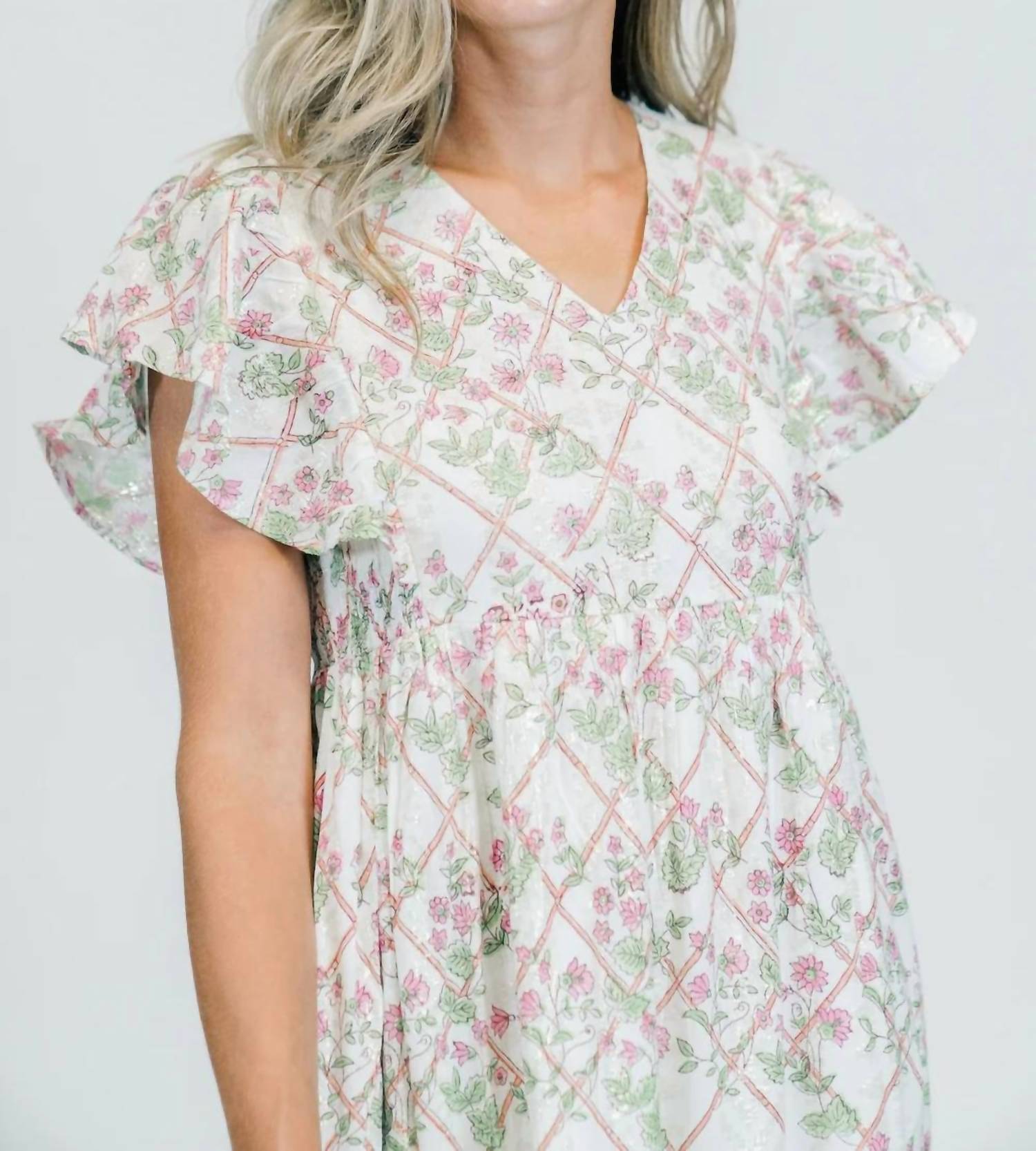 Introducing the Lyra Midi Dress by Clara the Label, a perfect embodiment of Boho Chic in a playful Emberglow hue. This dress features short sleeves and a flattering V-neckline, crafted from 100% Cotton Lurex with hand-blocked patterns by artisans in Jaipur, India. The pull-on closure and functional side pockets complement its A-line, floral silhouette, while the smocked side panels ensure a flattering fit. Care instructions include a hand wash only and line dry, perfect for your summer vacation wardrobe.