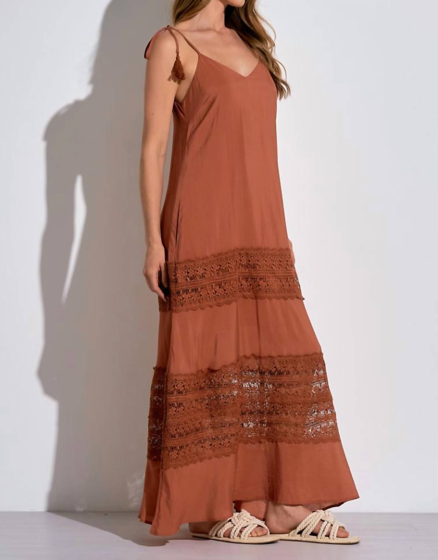 Quem não ama um bom vestido longo? Este você vai usar em todas as estações. Abrace o estilo descontraído do verão com o Vestido Longo com Detalhe de Renda Terracota da ELAN, a escolha perfeita para um dia de praia boho chic. Este vestido longo feminino em tom argila texturizado apresenta delicadas alças finas e decote em V, criando uma silhueta elegante. Fechamento: Amarração. Consulte a etiqueta da peça para instruções de lavagem e secagem.