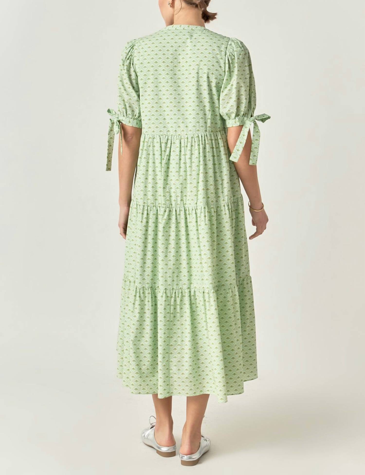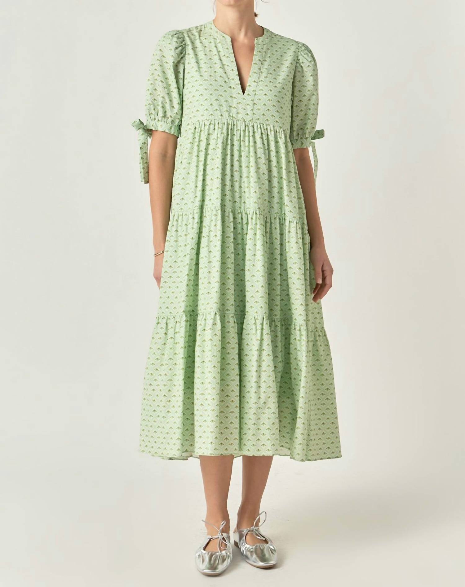Um vestido midi tão versátil que suas opções de uso são infinitas. Descubra o Vestido Midi Estampado com Decote em V e Camadas da English Factory, uma adição requintada ao seu guarda-roupa em um tom verde vibrante. Este vestido apresenta mangas curtas com um charmoso detalhe de laço nos punhos, adicionando um toque feminino ao seu charme boho chic. Confeccionado em algodão de alta qualidade, garante conforto e durabilidade supremos durante as suas férias de verão. Com fecho de amarração, apresenta uma silhueta em corte A que valoriza qualquer tipo de corpo, tornando-o uma peça de destaque para eventos de Ação de Graças ou sempre que você quiser dar um toque especial ao seu visual. Cuidados: Lavar somente à mão.
