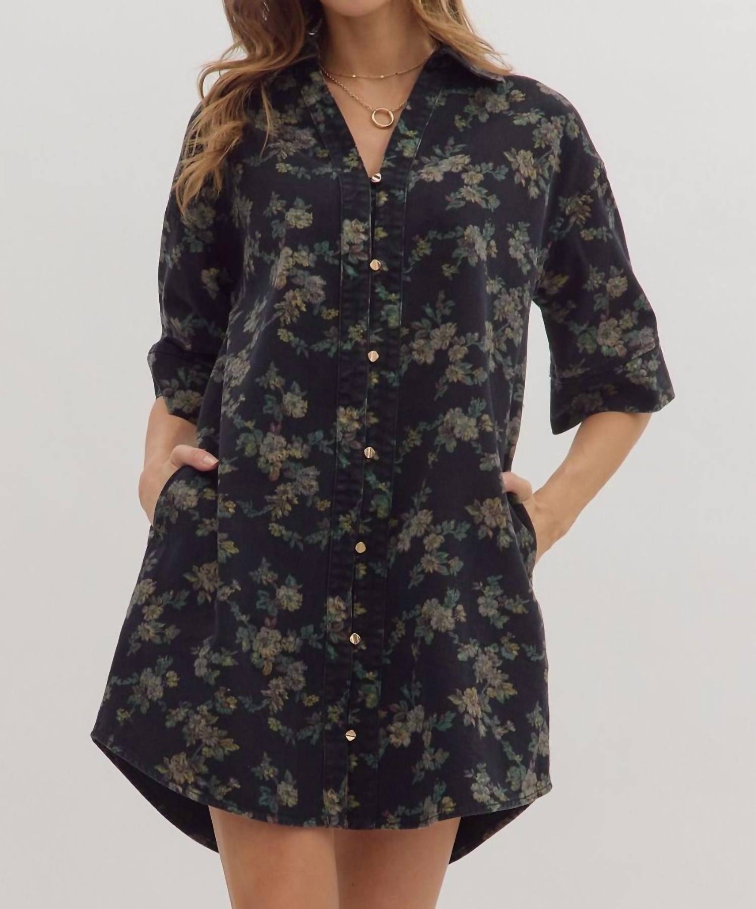 The perfect mini dress for those warmer months. Experience effortless summer style with the Floral Half Sleeve Button Mini Dress from Entro. This women's dress in a classic black floral pattern is crafted from a lightweight cotton blend, offering comfort and breathability for vacation wear. Featuring elbow-length sleeves and a mini silhouette, it includes practical side pockets and a button front closure, topped off with a stylish collar neckline. Ideal for maximalist trends, this piece offers easy-wear elegance for your seasonal adventures.