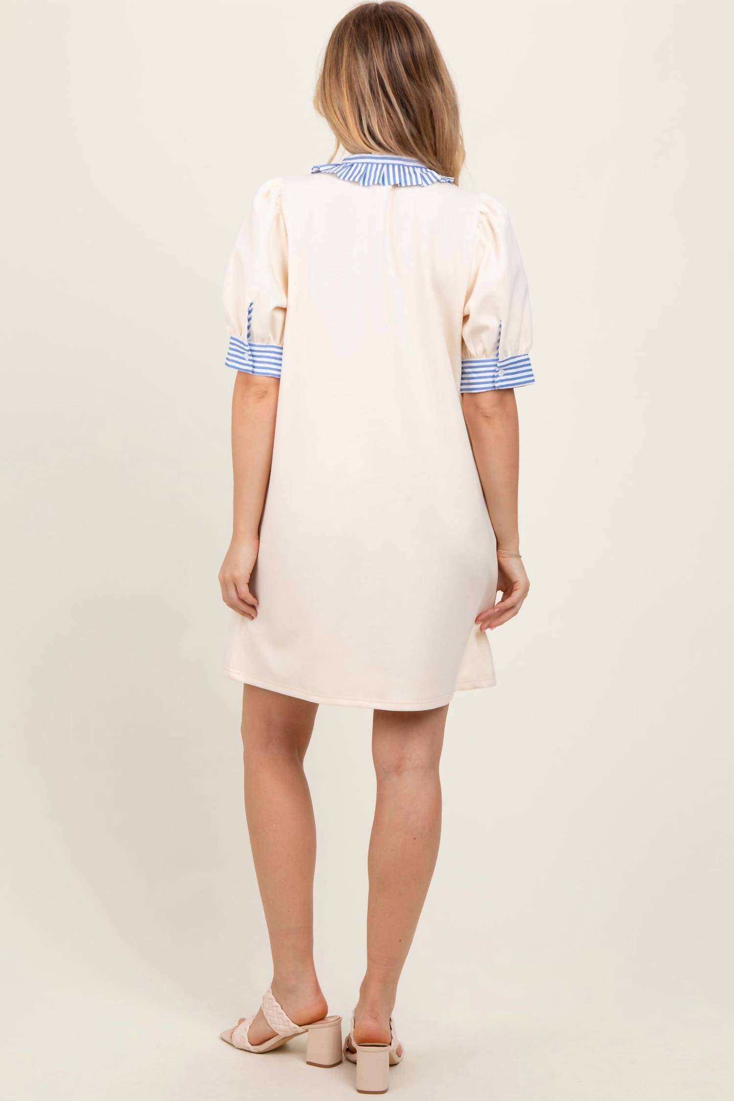 Eleve seu guarda-roupa com o Vestido Camisa Entro Listrado com Gola, de mangas curtas, na elegante cor creme com listras azuis e brancas. Confeccionado em mistura de algodão (50% algodão, 43% poliéster, 7% elastano), este vestido curto oferece conforto o dia todo e um visual elegante com sua gola estruturada e fecho de botão. Perfeito para diversas ocasiões, ele também inclui bolsos práticos. Cuide desta peça chique e despojada lavando-a à mão com água fria, secando no varal e usando ferro em temperatura baixa, se necessário.