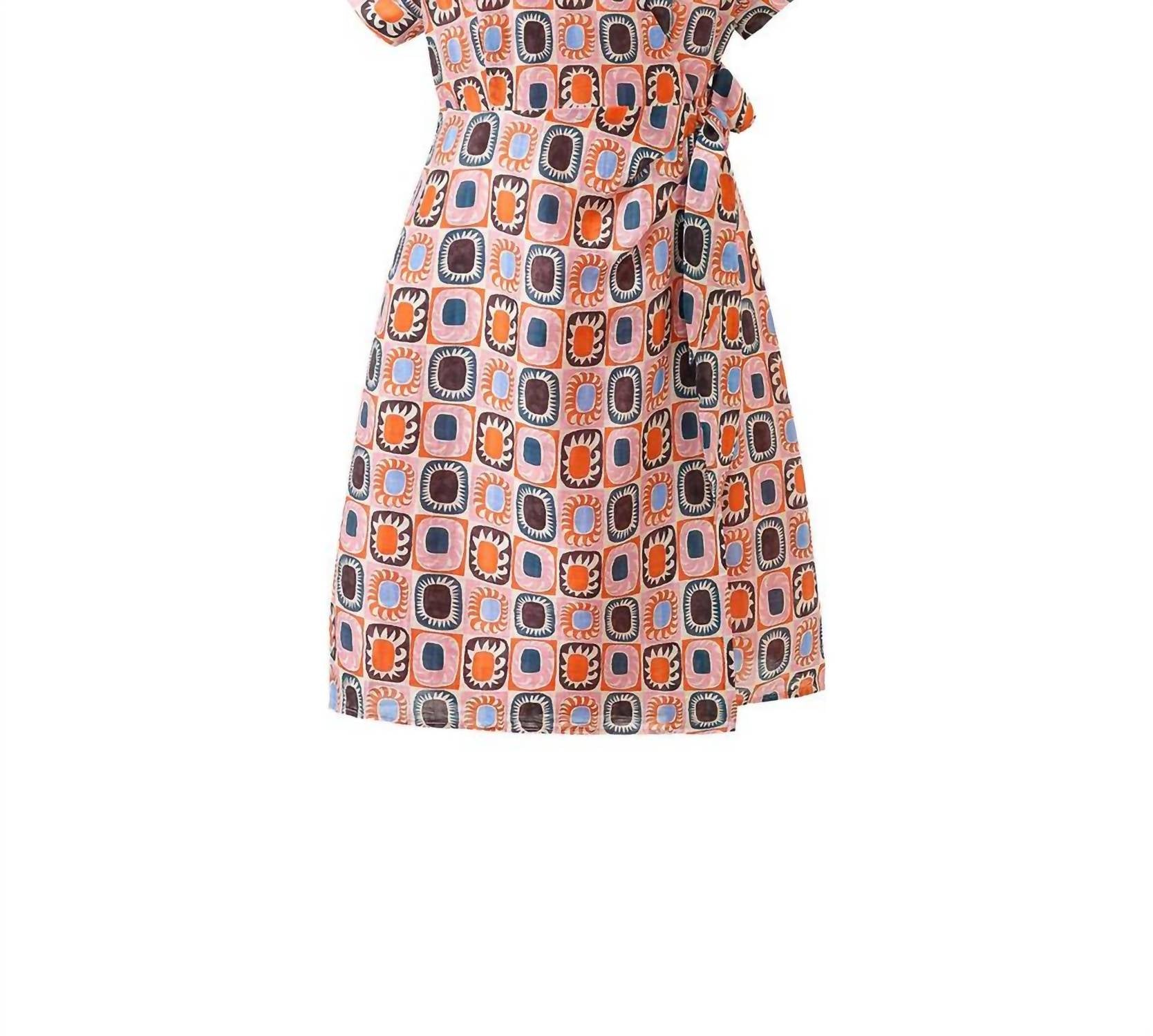 The kind of easy and flattering dress you'll be reaching for all season long. The FRNCH Alyha Dress in Soleil color captures the spirit of Parisian elegance with its charming design. This Women's mini wrap dress features short sleeves and a flattering V-neck, making it ideal for a boho chic dinner party or Valentine's Day outing. Crafted from a lightweight blend of 66% Lyocell, 19% Polyamide, and 15% Linen, it showcases a vibrant FRNCH pattern. Closure: Tie Closure. Care: Hand wash. Model is 5'7" and wearing a size XSmall.